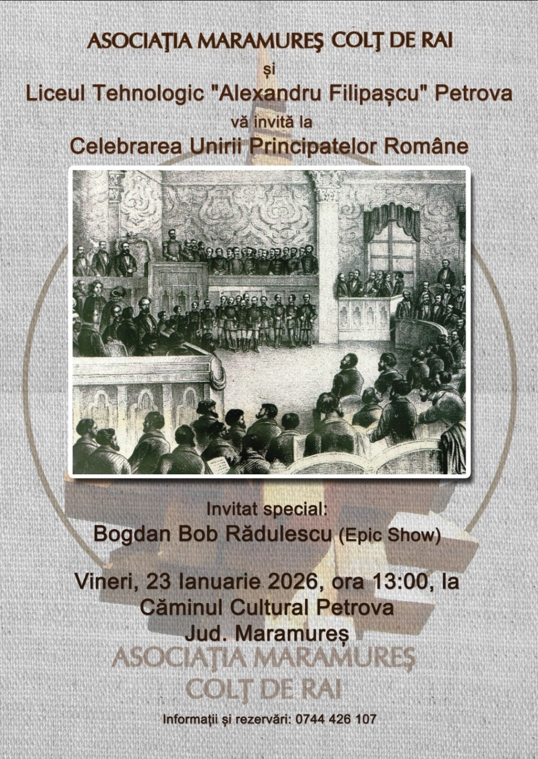 Comunitatea din Petrova se pregătește să celebreze Unirea Principatelor Române printr-un eveniment deosebit, organizat de Asociația Maramureș Colț de Rai, în parteneriat cu Liceul Tehnologic „Alexandru Filipascu” din localitate.