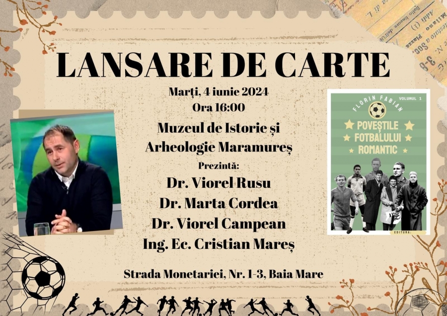 Un eveniment cultural destinat fotbalului va avea loc marți, 4 iunie, la Muzeul de Istorie și Arheologie din Baia Mare.