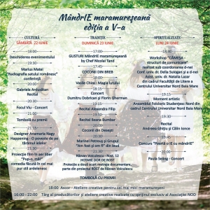Muzeul Satului din Baia Mare găzduiește, în perioada 22 – 24 iunie, cea de-a V-a ediție a evenimentului „MândrIE maramureșeană”. În cadrul acestuia vor avea loc momente artistice, proiecții de filme și scurtmetraje, tombole, ateliere creative. Iată programul complet: