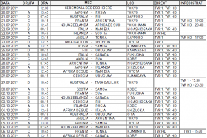 Programul TV al meciurilor Cupei Mondiale de Rugby 2019