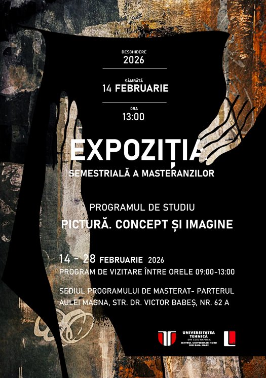 Sâmbătă, 14 februarie, studenții și masteranzii înscriși în programele de studii Arte Plastice- Pictură, nivel licență, respectiv Pictură- Concept și imagine, nivel masterat de la Universitatea Tehnică din Cluj-Napoca- Centrul Universitar Nord Baia Mare, vor expune lucrările realizate în acest sementru în cadrul expozițiilor semestriale organizate în spațiul academic.