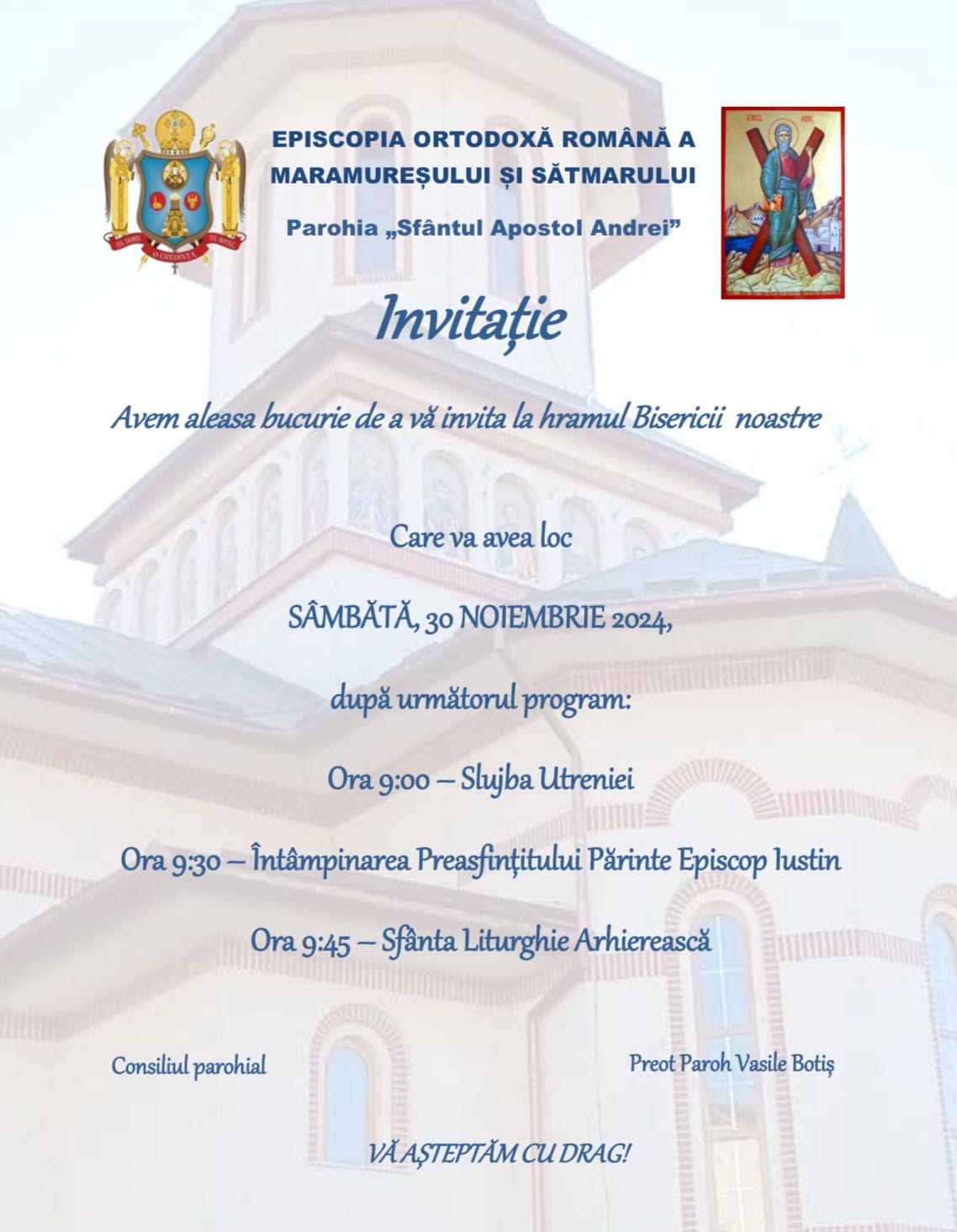 Sunteți invitați la hramul Parohiei „Sfântul Apostol Andrei” din Baia Mare