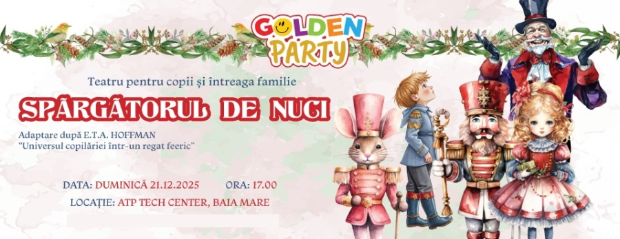 Duminică, 21 Decembrie 2025 de la ora 17:00, spectacolul de teatru „Spărgătorul de nuci”, destinat atât celor mici, dar și celor mari, în regia lui Ion Ambrosi, va fi pus în scenă la ATP Tech Center Baia Mare.