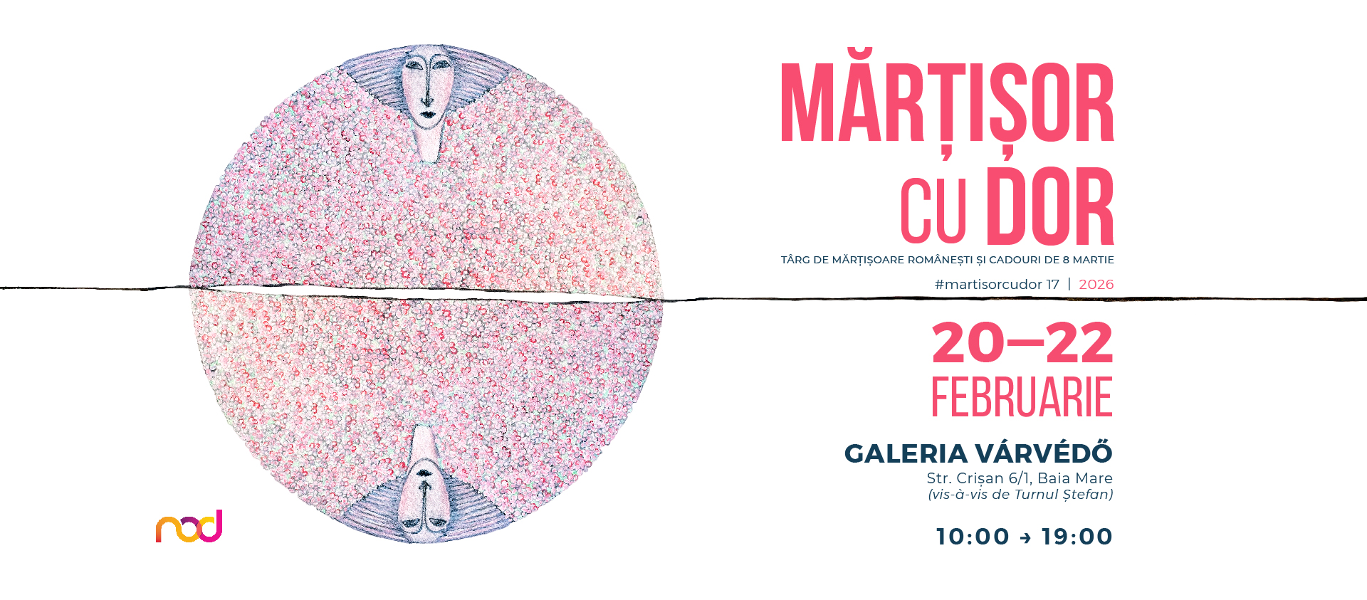 În perioada 20 – 22 februarie (între orele 10.00 și 19.00), în Baia Mare va fi deschis „Mărțișor cu Dor” – Târg de mărțișoare românești și cadouri de 8 Martie. Locația este Galeria Várvédő, str. Crișan 6/1, Baia Mare (vizavi de Turnul Ștefan).