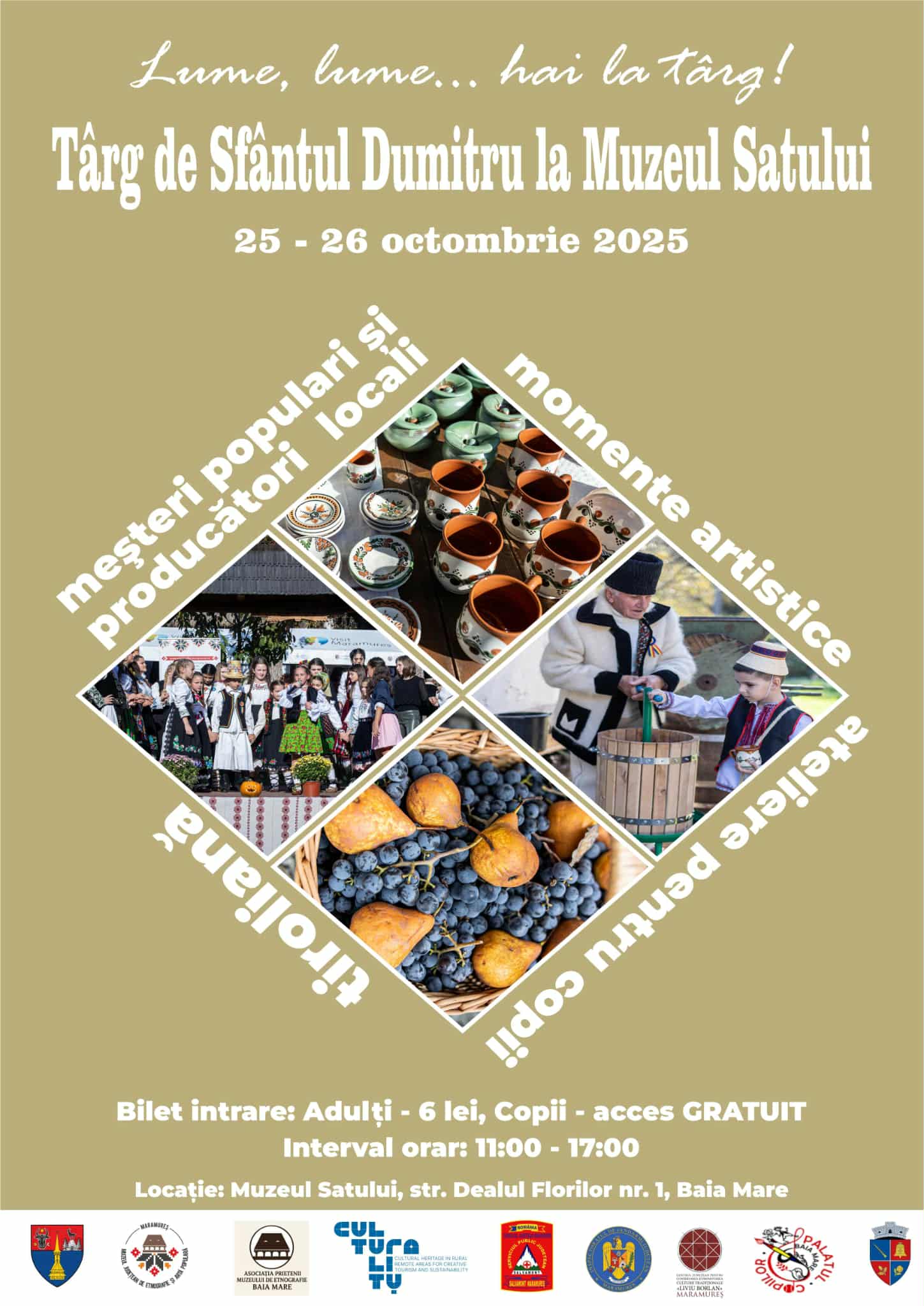 În perioada 25-26 octombrie, între orele 11:00 și 17:00, Muzeul Satului din Baia Mare vă invită la cea de-a VIII-a ediție a Târgului de Sfântul Dumitru.