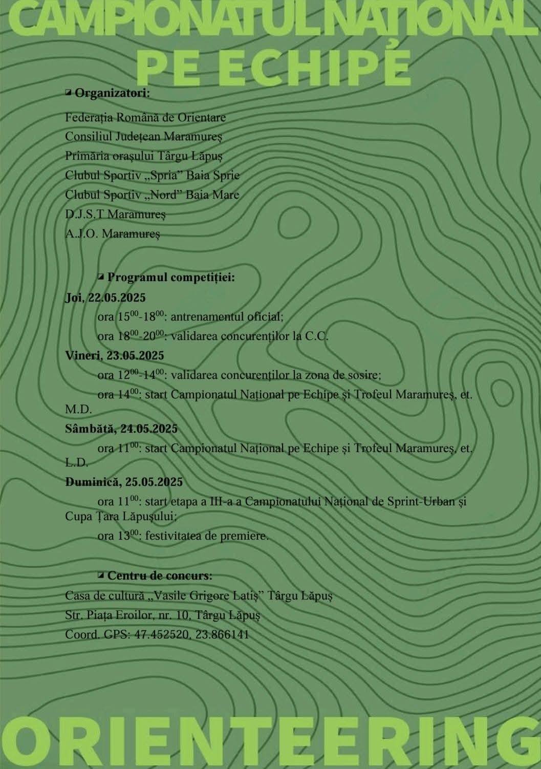 În perioada 23 – 25 mai, în Țara Lăpușului se va desfășura Trofeul Maramureșului – ediția 54 și Campionatul Național pe Echipe de Orientare în Alergare.