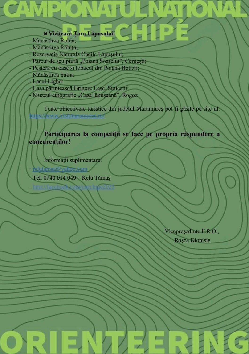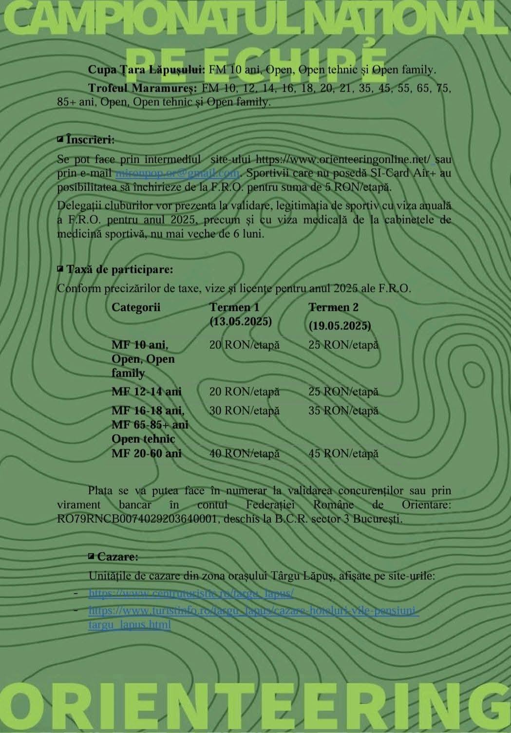 „Vă invităm cu drag la un eveniment sportiv de tradiție, dedicat iubitorilor de orientare în alergare, cu trasee spectaculoase și competiție la cel mai înalt nivel. Toate detaliile legate de categorii, condiții de participare, taxele de înscriere și zonele de concurs le găsiți mai jos.