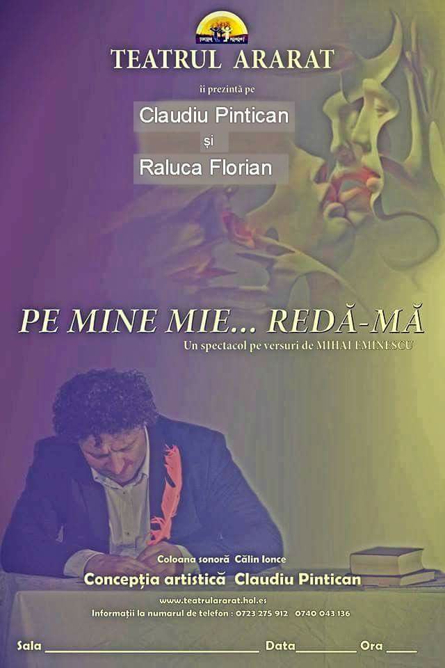 Urmează apoi un miniturneu ardelean cu spectacolul „Pe mine, mie…redă-mă” (pe versuri de Eminescu), care va fi susținut după următorul program: 15 ianuarie, orele 19.00, la Teatrul ”Aureliu Manea” din Turda ● 16 ianuarie, orele 12.00, la Colegiul ”Mihai Eminescu” din Cluj-Napoca ● 18 ianuarie, orele 19.00 și 19 ianuarie, orele 12.30, la sala Teatrului Ararat Baia Mare ● 21 ianuarie, orele 19.00, la Teatrul Scena din Târgu-Mureș ● 23 ianuarie, orele 12.00 și 18.00, la Casa Orășenească de Cultură din Jibou.