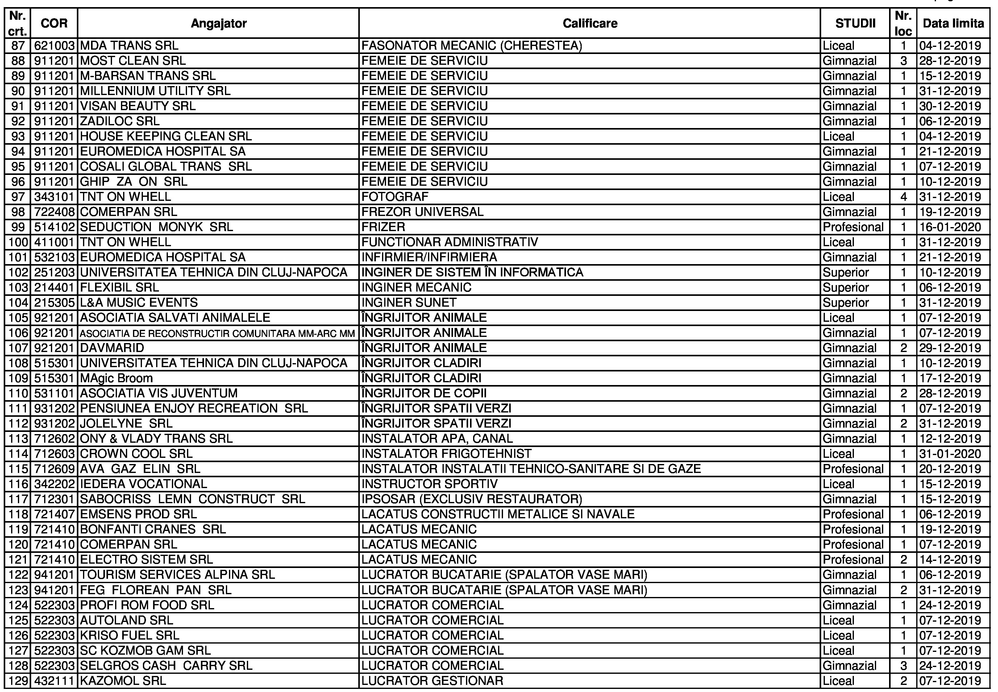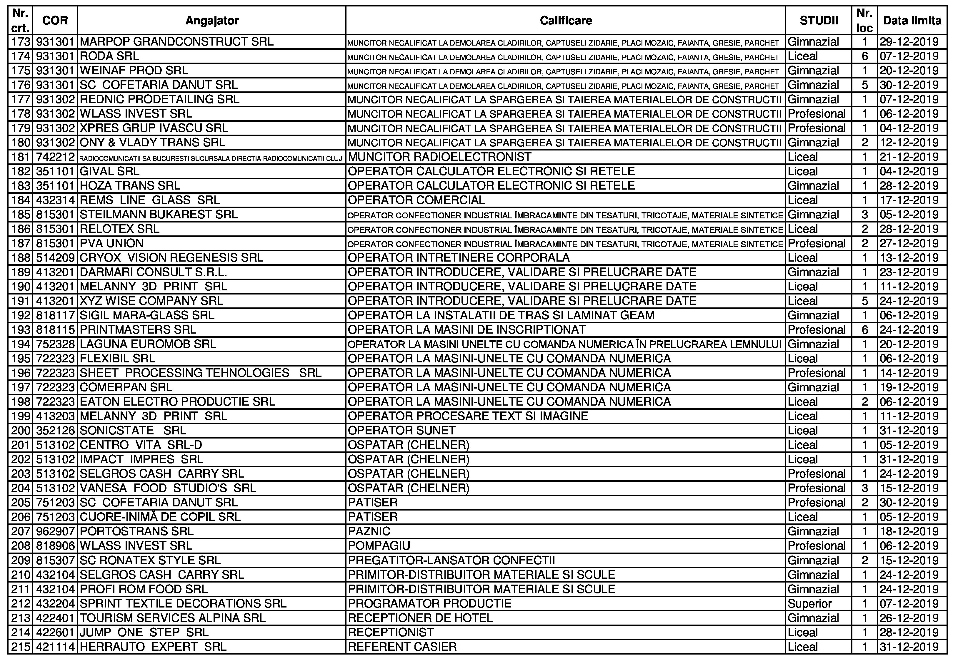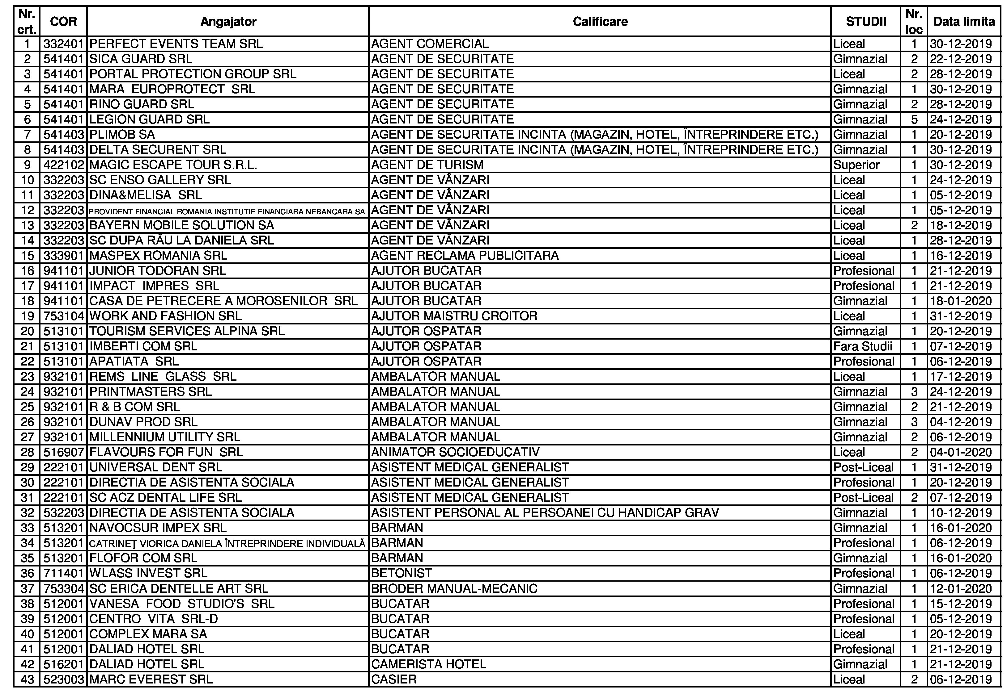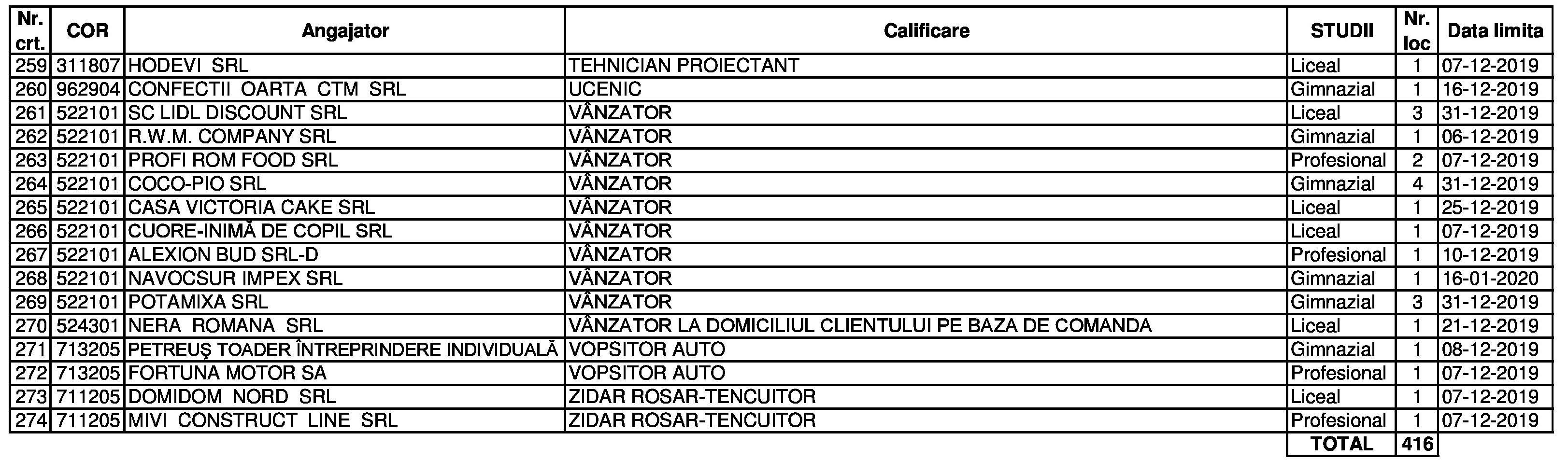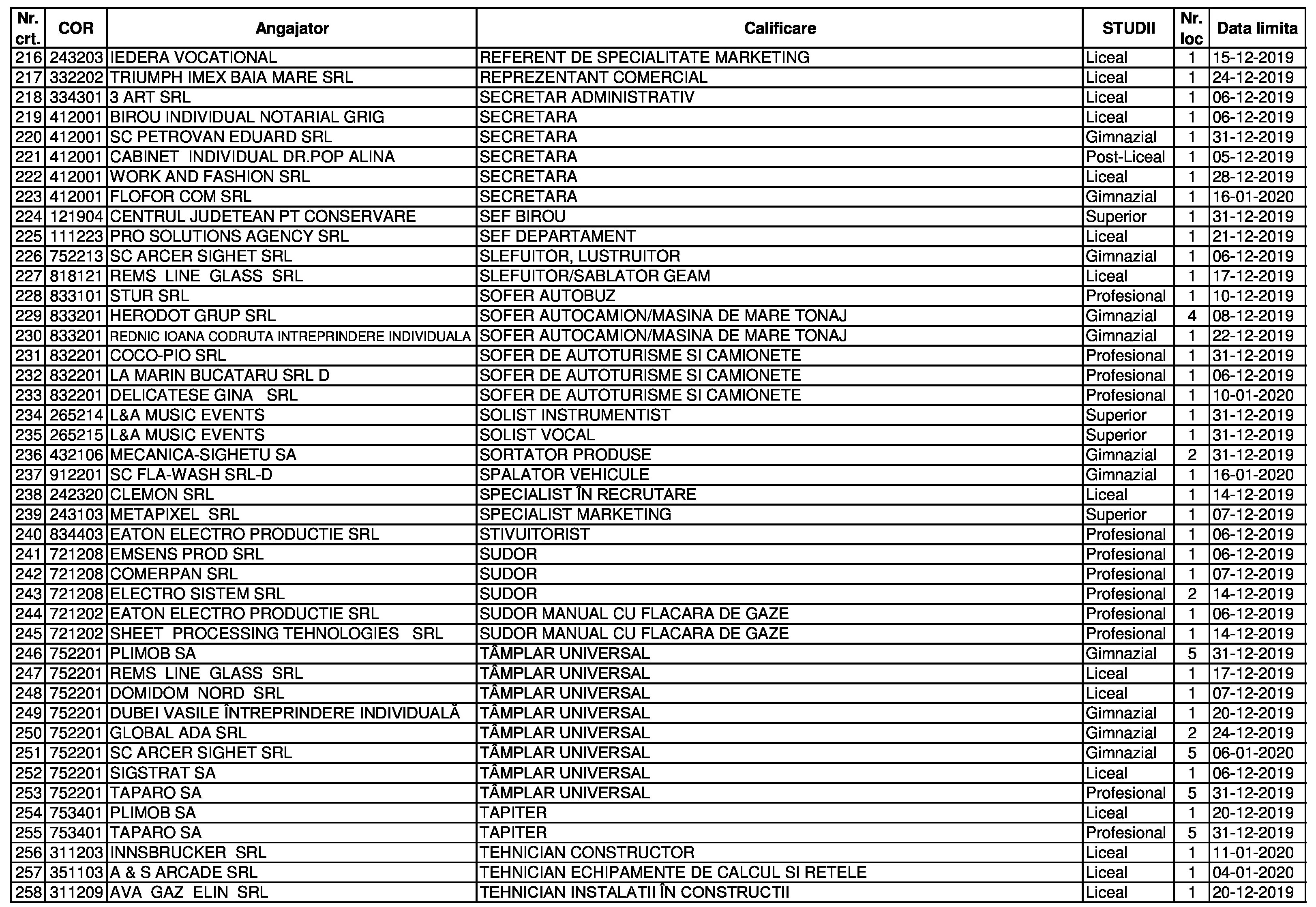 Agenția Județeană pentru Ocuparea Forței de Muncă (AJOFM) Maramureș anunță că în județ sunt disponibile 416 joburi, domeniile fiind variate. De exemplu, se caută agenți de vânzări, casieri, designeri, îngrijitori pentru animale, clădiri și copii, asistenți medicali, directori etc. Încă nu s-a a ocupat postul de director societate comercială, cel pentru care se cer doar studii profesionale. Cei interesați pot obține mai multe detalii de la sediul instituției: Baia Mare, str. Hortensiei, nr. 1A; telefon: 0262 227 820, 0262 227 821.