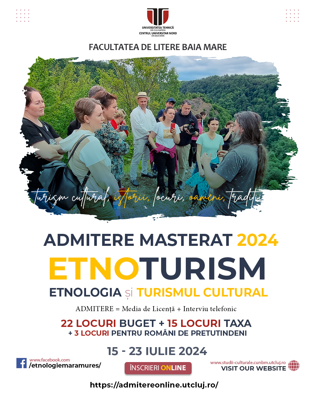 Domeniul STUDII CULTURALE, dar și programul de master ETNOTURISM/ETNOLOGIA ȘI TURISMUL CULTURAL, din cadrul Facultății de Litere, Centrul Universitar Nord din Baia Mare sunt concepute interdisciplinar, chiar transdisciplinar, fiind dedicate studiului etnologic, antropologic, economic, sociologic şi lingvistic al zonelor cu potenţial etnoturistic, pentru o corectă promovare şi valorificare turistică a acestora”, transmit cei de la Facultatea de Litere.
