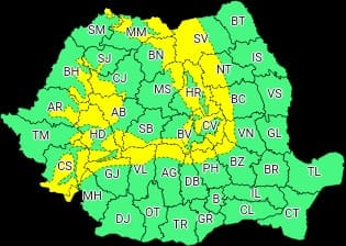 Și partea înaltă din Maramureș intră sub incidența acestui cod, după cum se observă și din harta furnizată de Administraţia Naţională de Meteorologie.