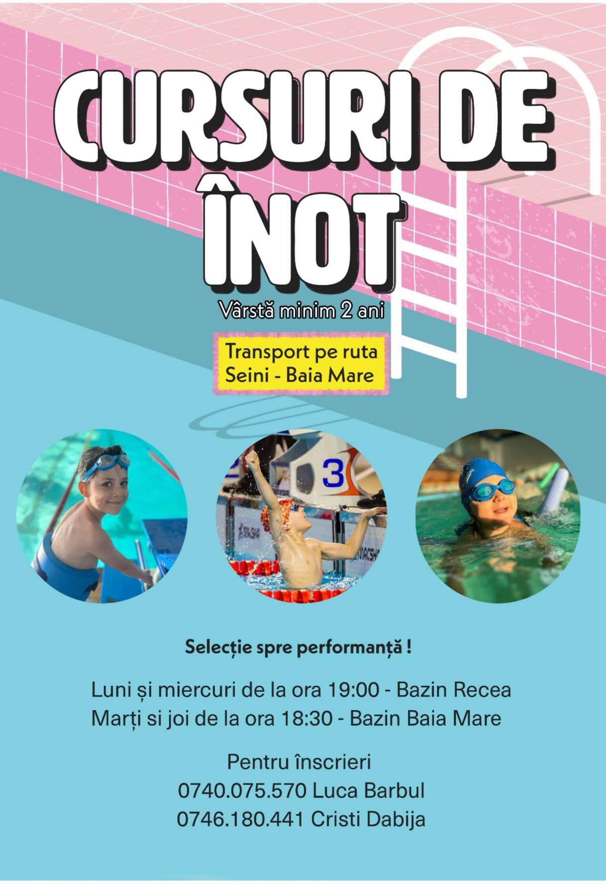 Clubul Sportiv Seini anunță că se fac înscrieri pentru cursurile de înot. Acestea se desfășoară la bazinul din Recea, respectiv la cel din Baia Mare.