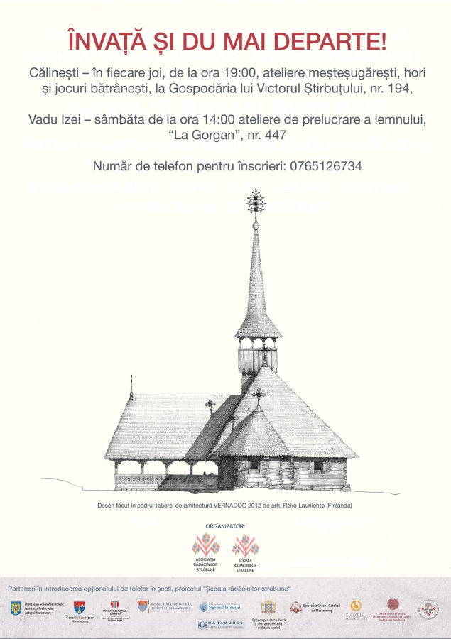 Prof. Măriuca Verdeș anunță că în Călinești și Vadu Izei au loc ateliere organizate de Asociația și Școala Rădăcinilor Străbune. Acestea se desfășoară sub genericul „Învață și du mai departe!”.