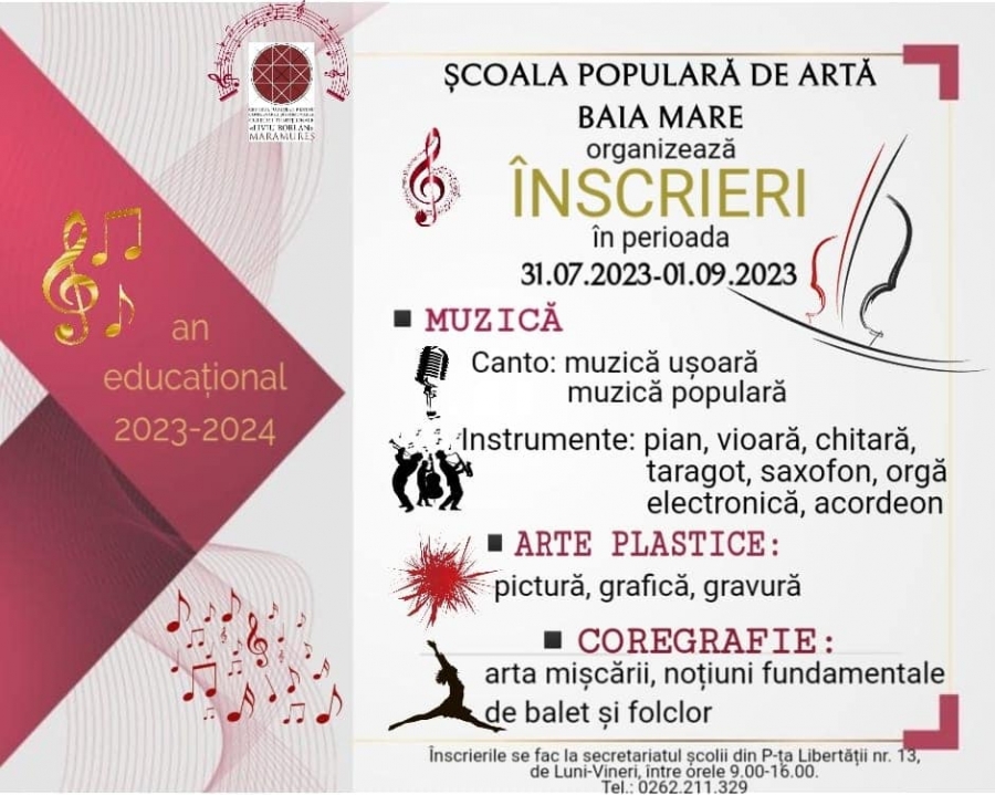 „Suntem o instituție de cultură, o școală cu o istorie de șase decenii… suntem mereu axați pe detalii, acestea mereu făcând diferența! Înscrierile se fac la sediul Școlii Populare de Artă, Baia Mare, strada Piața Libertății nr 13. Vă așteptăm cu drag!” – se precizează pe pagina Școlii.
