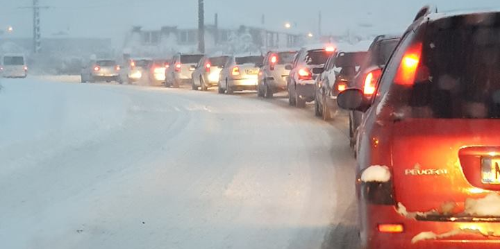 Ninsori până spre prânz și strat nou de zăpadă, blocaje pe drumuri