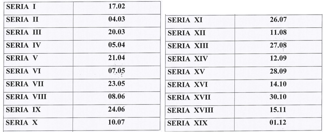Iată și care sunt datele de început ale celor 19 serii de bilete de tratament pentru anul 2020: