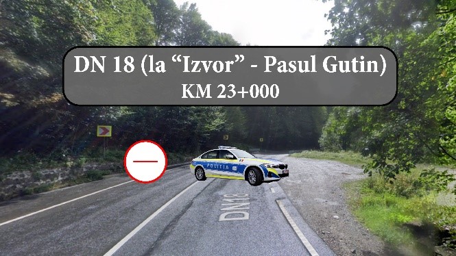Sectorul de drum restricționat circulației publice este cuprins între intersecția DN 18 cu DJ 183C (foto 1 – km 15+400) și DN 18 (foto 2 – km 23+000). Pentru închiderea și deschiderea circulației, în sprijinul organizatorului vor acționa agenții Servicului de Poliție Rutieră al Inspectoratului de Poliție Județean Maramureș.