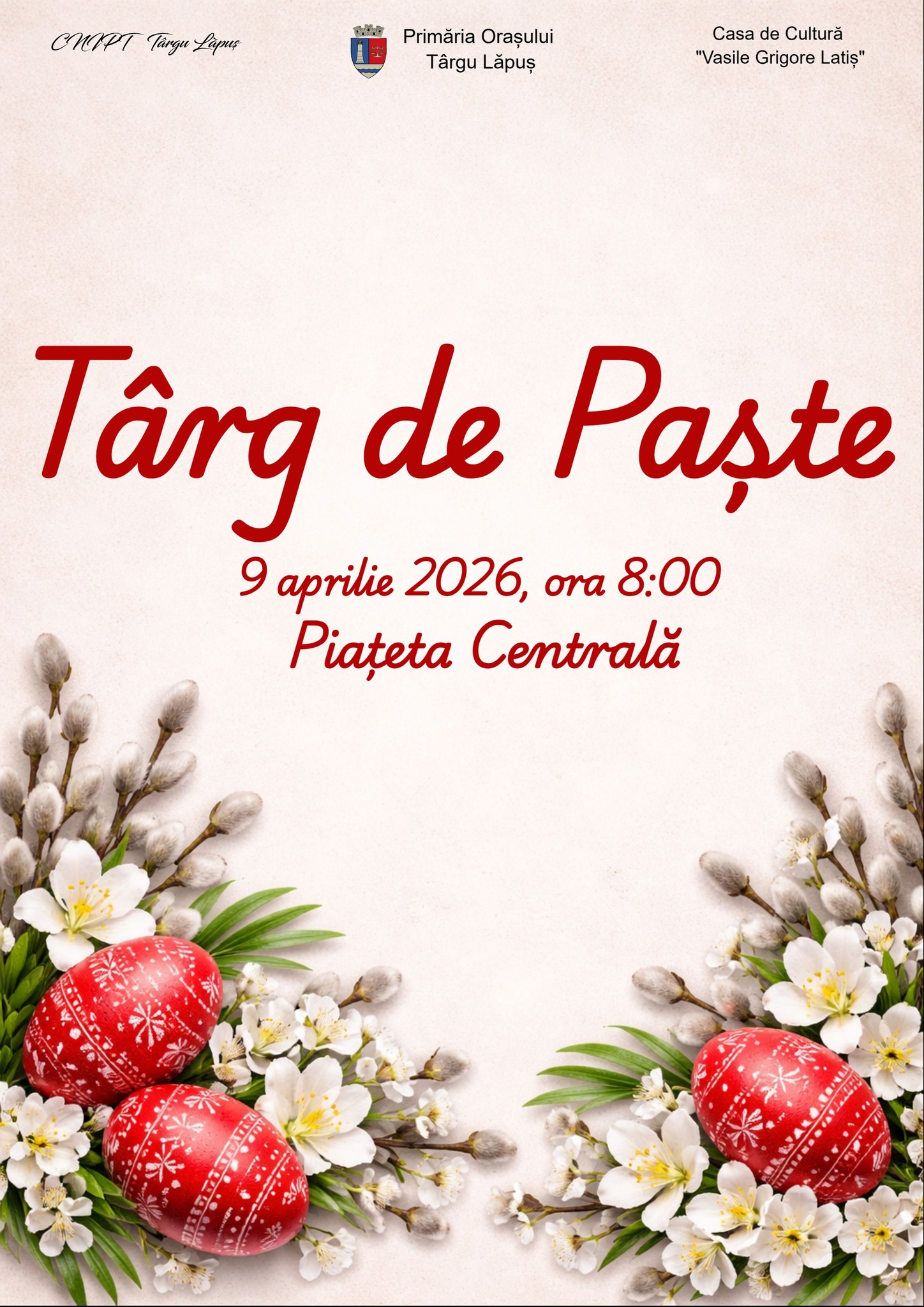 Locuitorii din Târgu Lăpuș și nu numai sunt invitați să întâmpine bucuria sărbătorilor pascale într-un cadru autentic, la Târgul de Paște organizat joi, 9 aprilie, începând cu ora 08:00, în piațeta din fața Casei de Cultură „Vasile Grigore Latiș”.