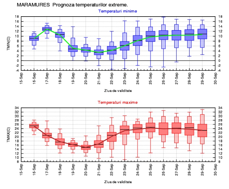 Vremea se va răci și Maramureș, media maximelor scăzând de la 25 ͦ C până la 15 – 16 ͦ C în jurul datei de 21 septembrie. După această dată, temperatura aerului va creşte treptat şi se estimează că până la sfârşitul lui septembrie mediile maximelor vot fi cuprinse între 21 şi 24 ͦ C. Media temperaturilor minime va scădea de la 13 ͦ C până la 3 – 4 ͦ C, în jurul datei de 22 septembrie Apoi, până în 26 septembrie, urmează o creştere treptată până spre 10 ͦ C, valoare ce se va menţine până la sfârşitul lunii. Probabilitatea de apariţie a ploilor va fi mai ridicată după data de 24 septembrie – e prognoza oferită de conform Administrația Națională de Meteorologie.