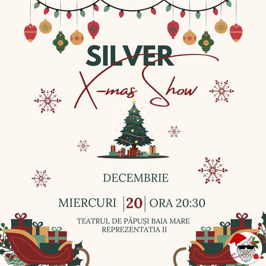 Teatrul Municipal Baia Mare, secția Păpuși, invită tinerii la cea de-a doua reprezentație a Concertului „Silver X-MAS Show” care va avea loc mâine seară, 20 decembrie, începând cu ora 20.30.