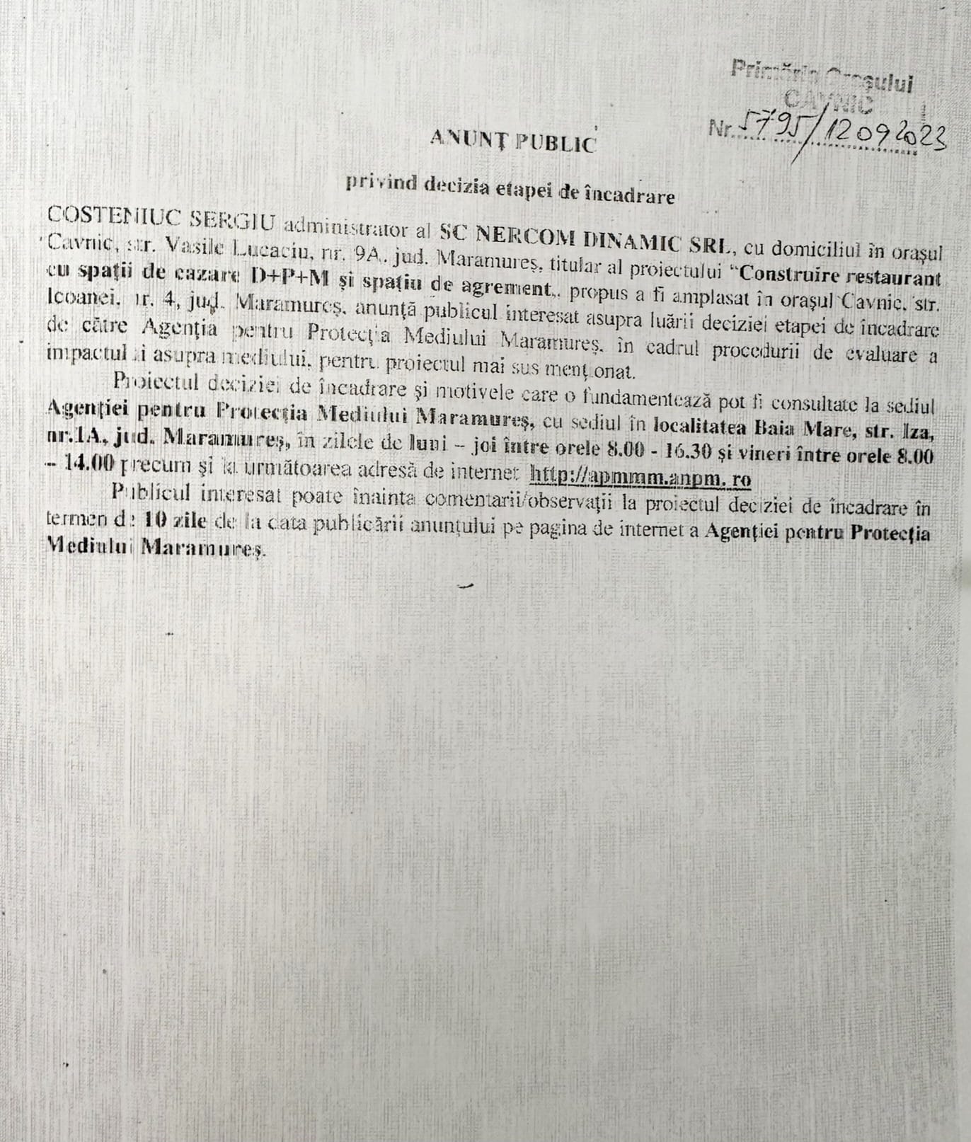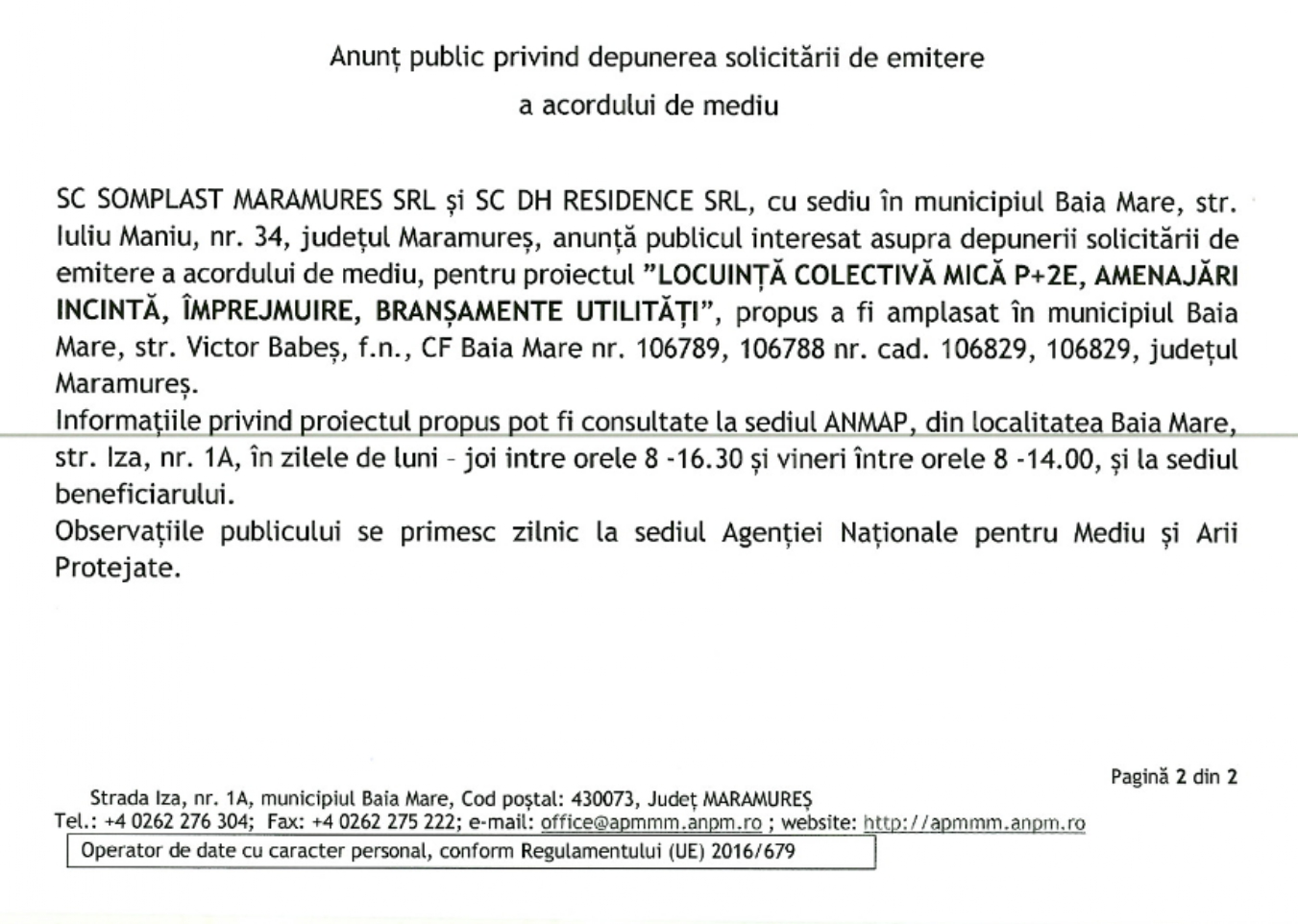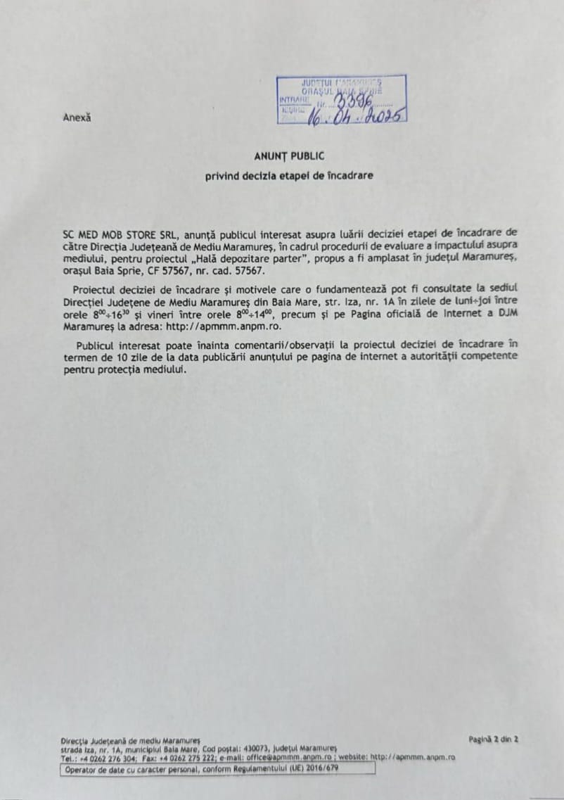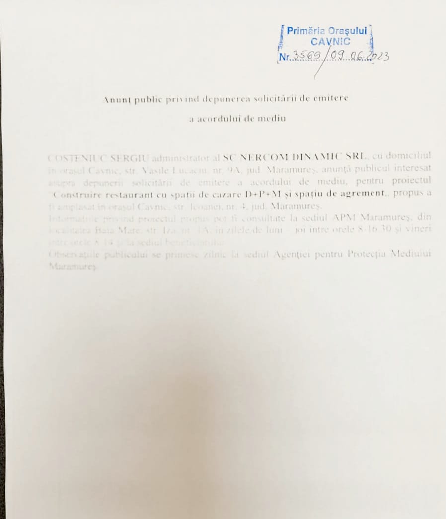 OUTDOOR EMOTION S.R.L., cu sediul în mun. Baia Mare, str. Griviței nr. 30, jud. Maramureș,…