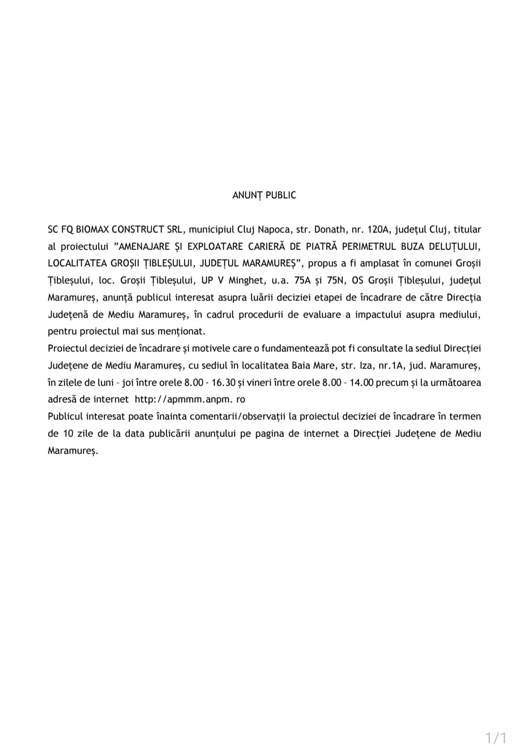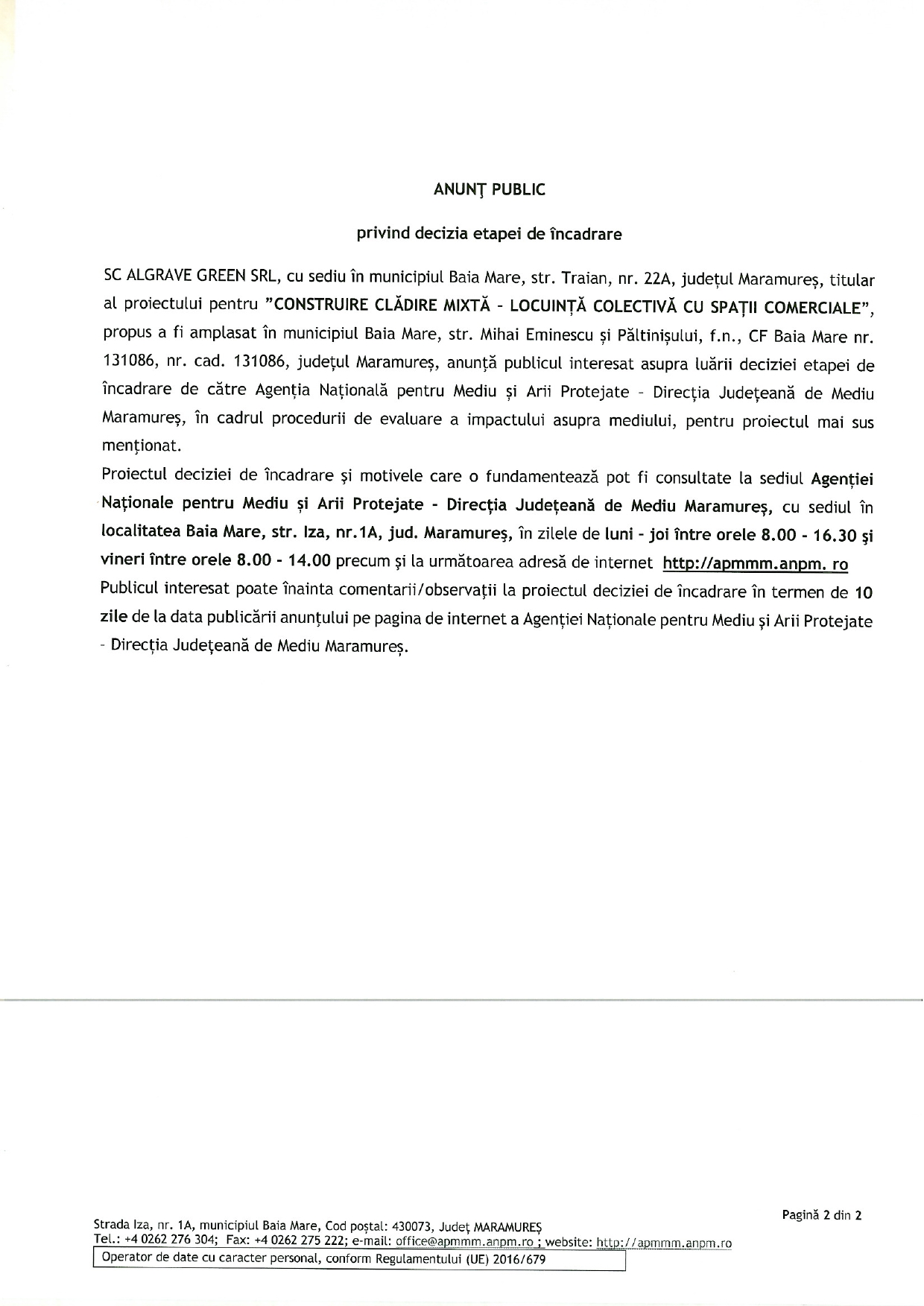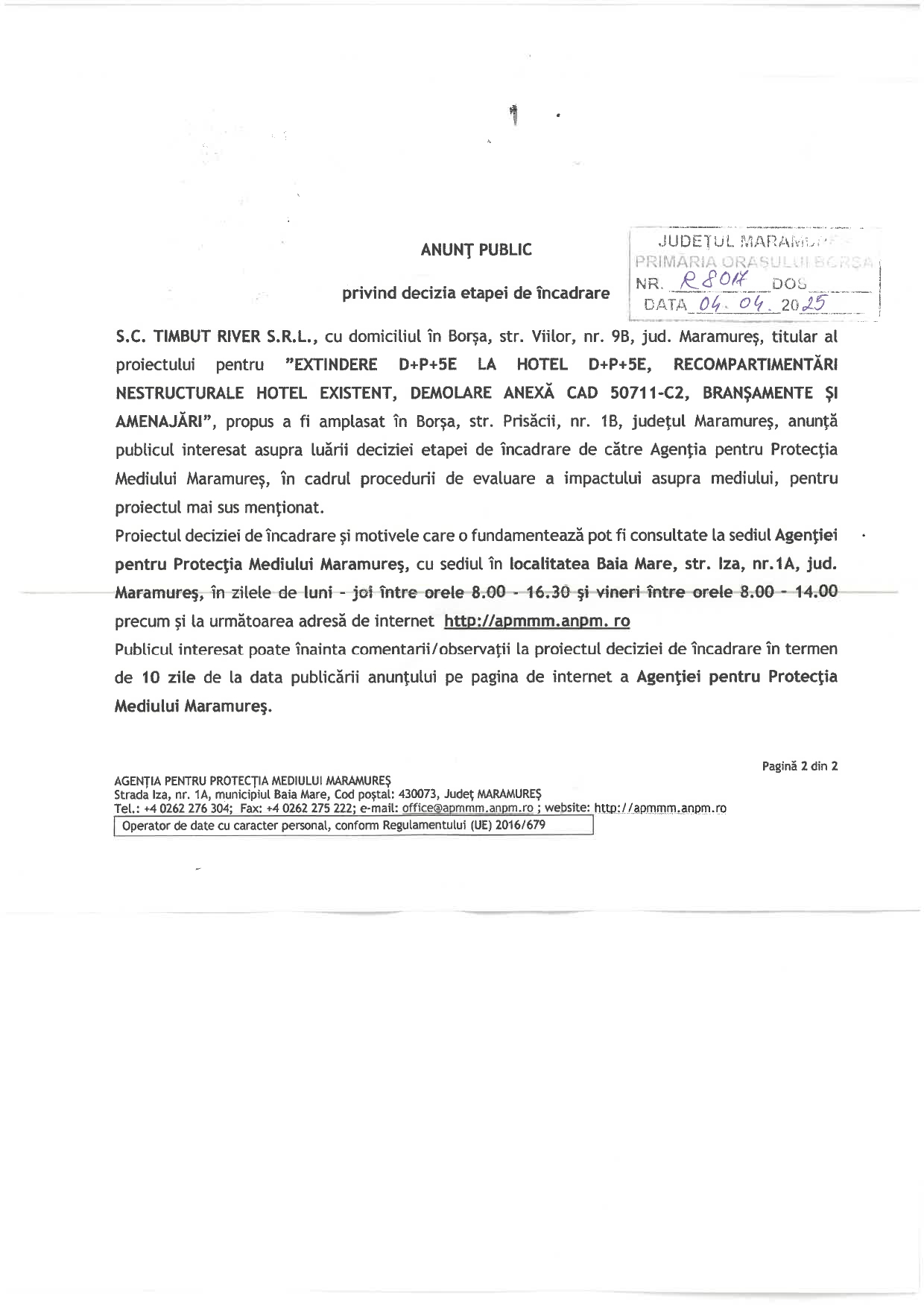 OUTDOOR EMOTION S.R.L., cu sediul în mun. Baia Mare, str. Griviței nr. 30, jud. Maramureș,…