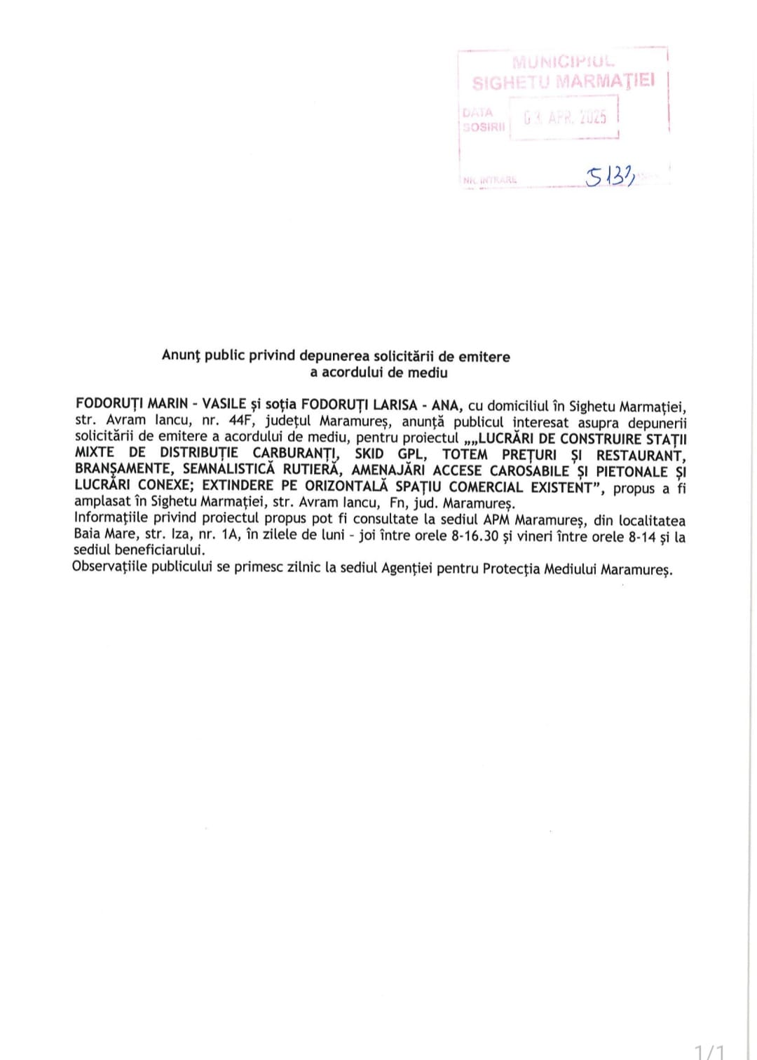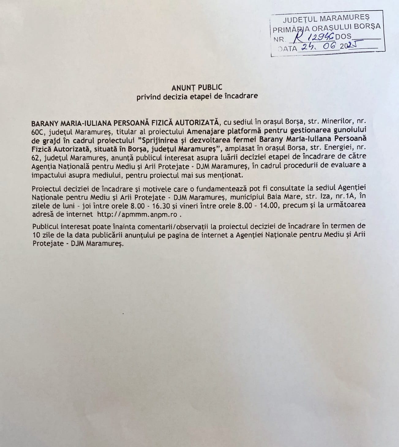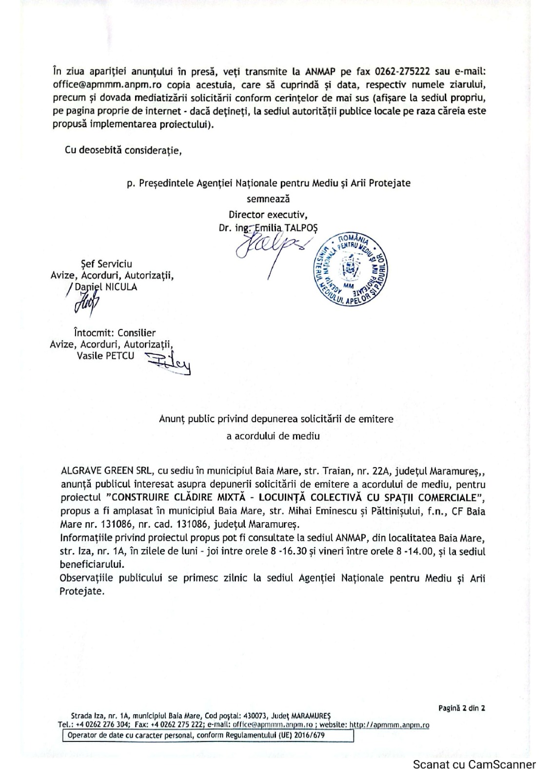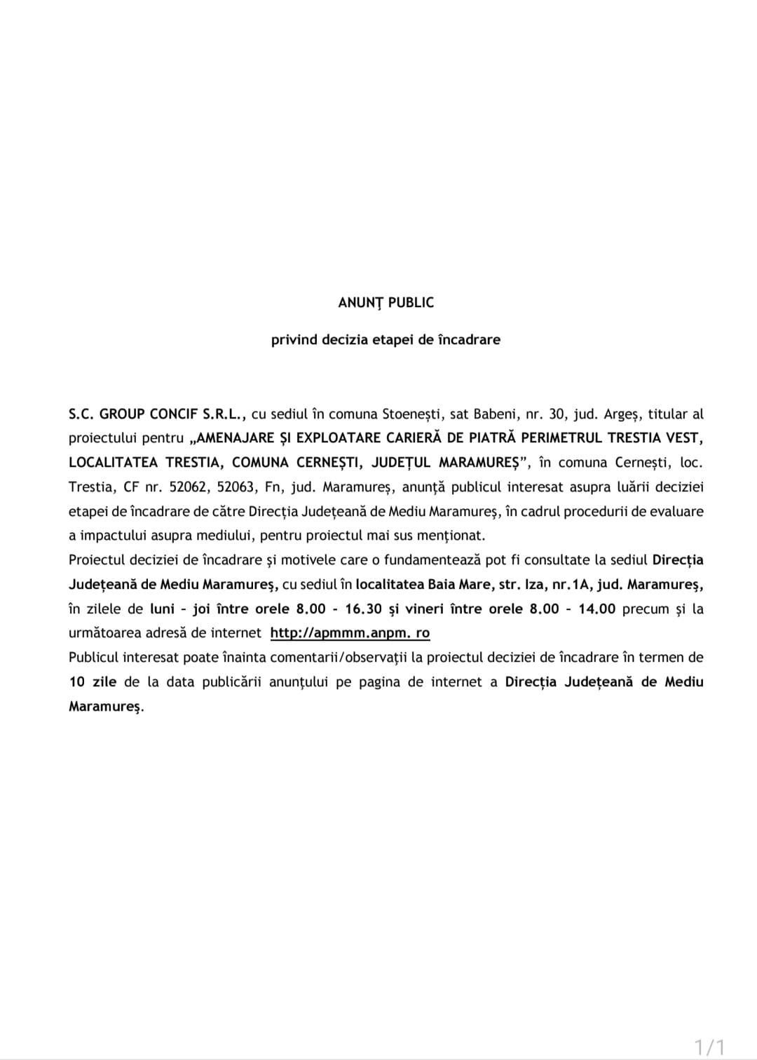 OUTDOOR EMOTION S.R.L., cu sediul în mun. Baia Mare, str. Griviței nr. 30, jud. Maramureș,…