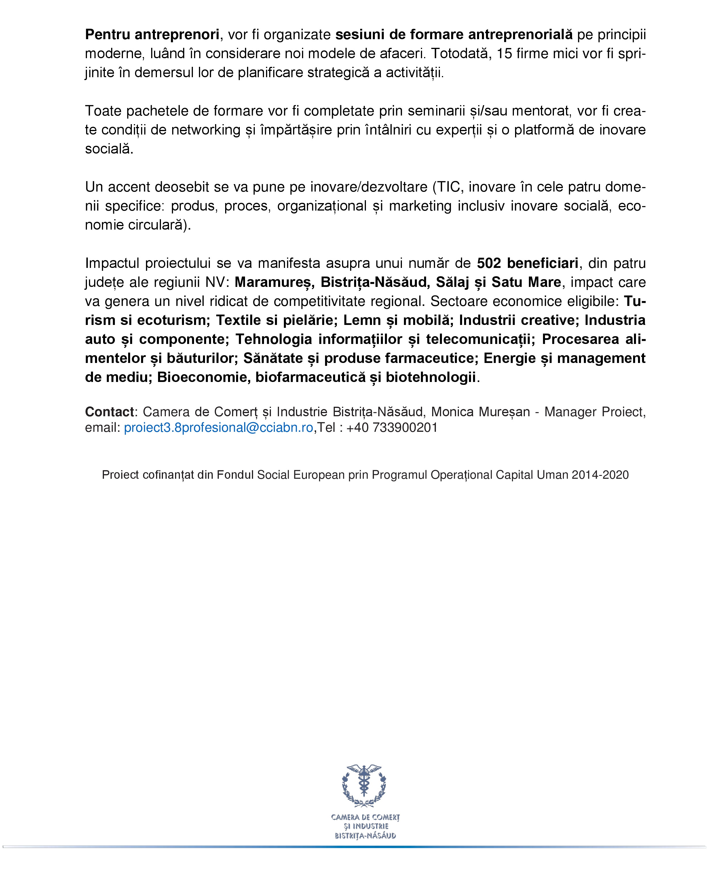 Comunicat de presă: ”Bistrița, pe harta profesională a Europei”