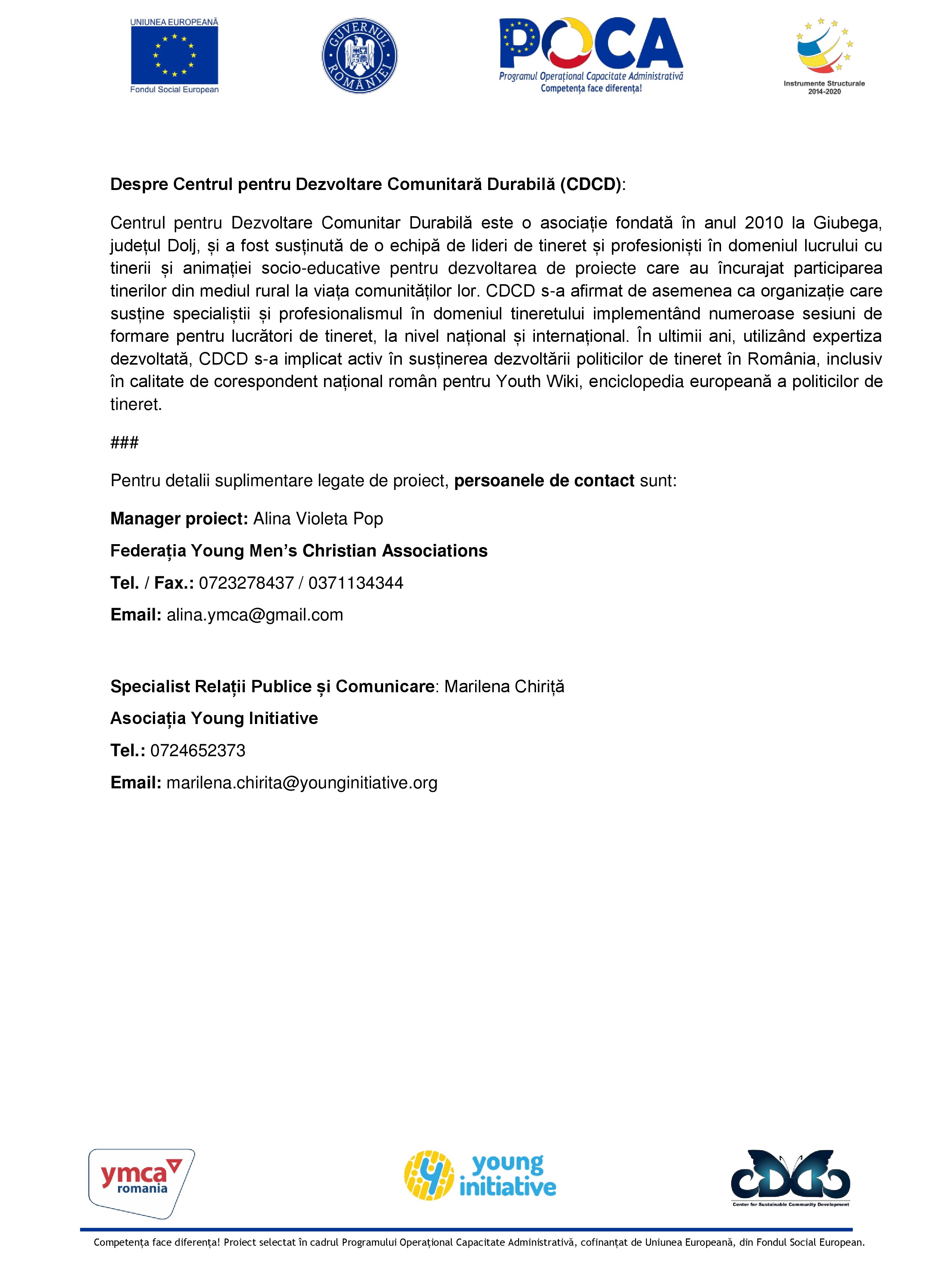 COMUNICAT DE PRESĂ: Demararea proiectului „Standarde și politici sustenabile în lucrul cu tinerii din România”