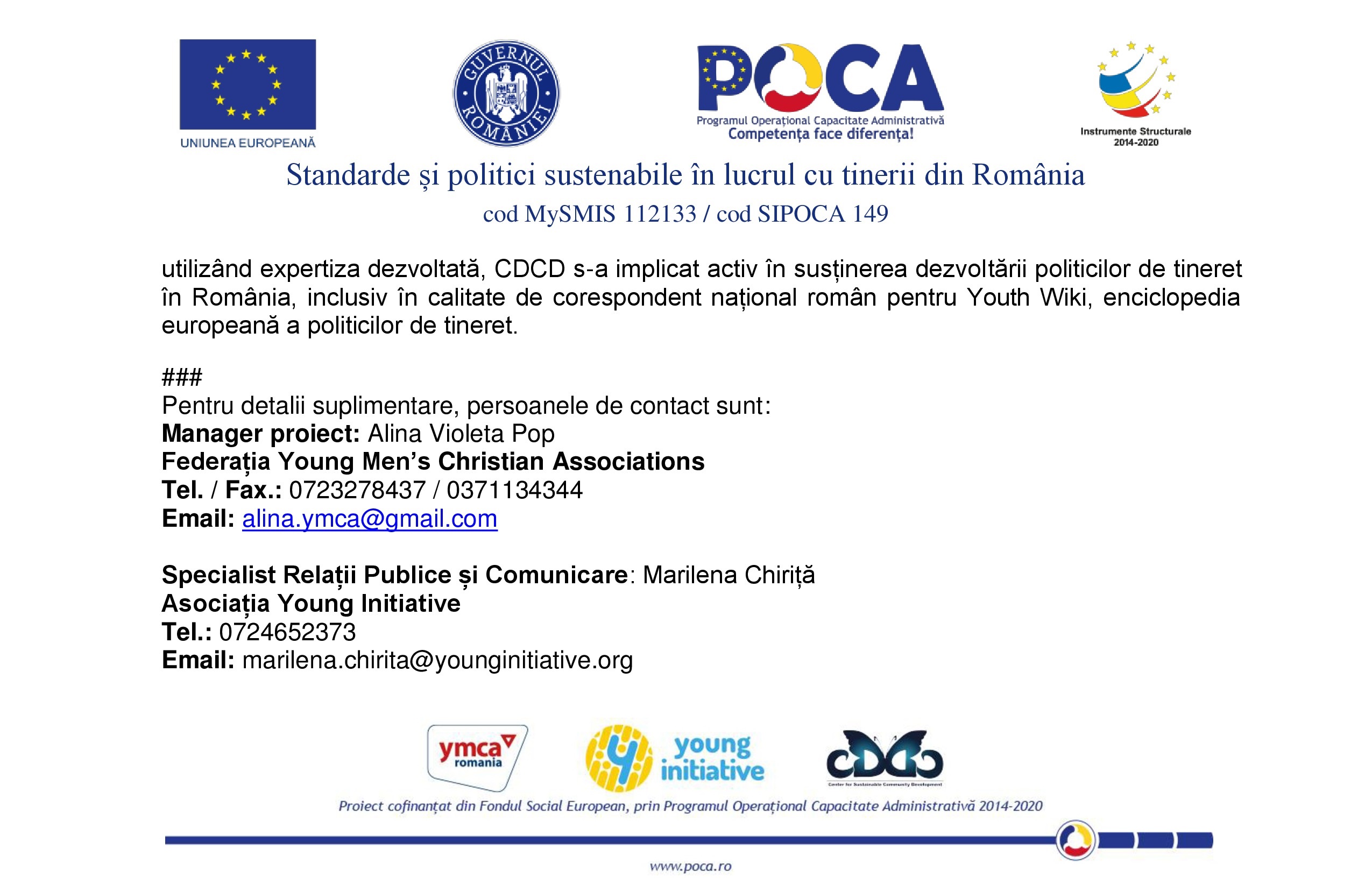 COMUNICAT DE PRESĂ. Forumul #YouthWorkWorks ”Lucrul cu tinerii dinRomânia, resurse și perspective”