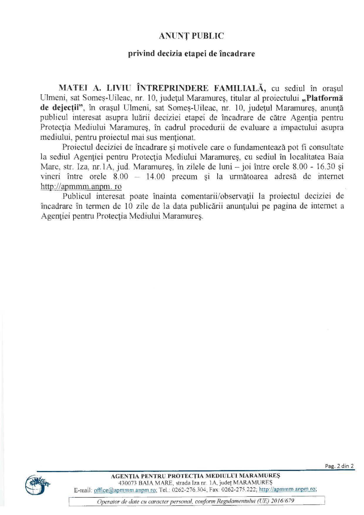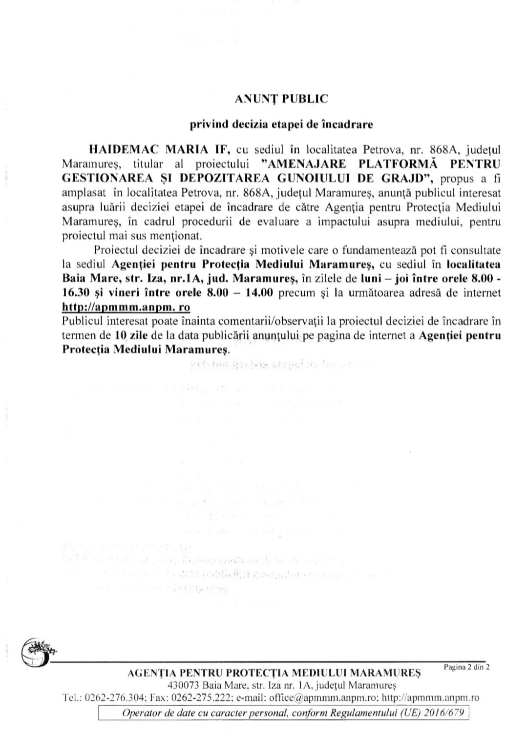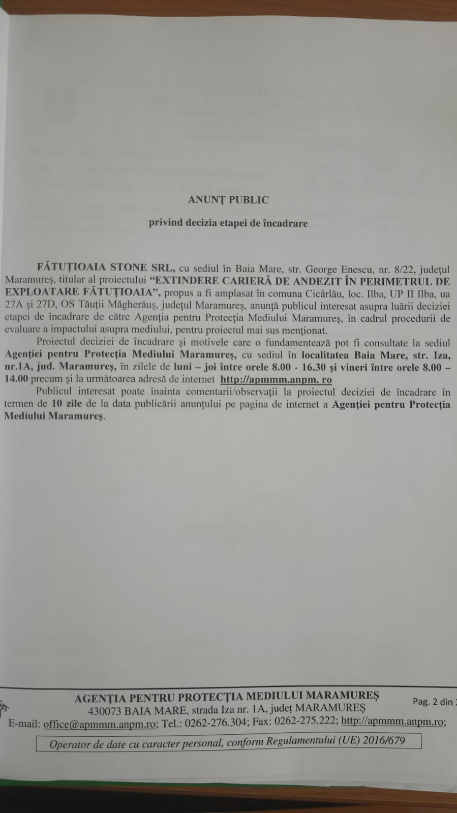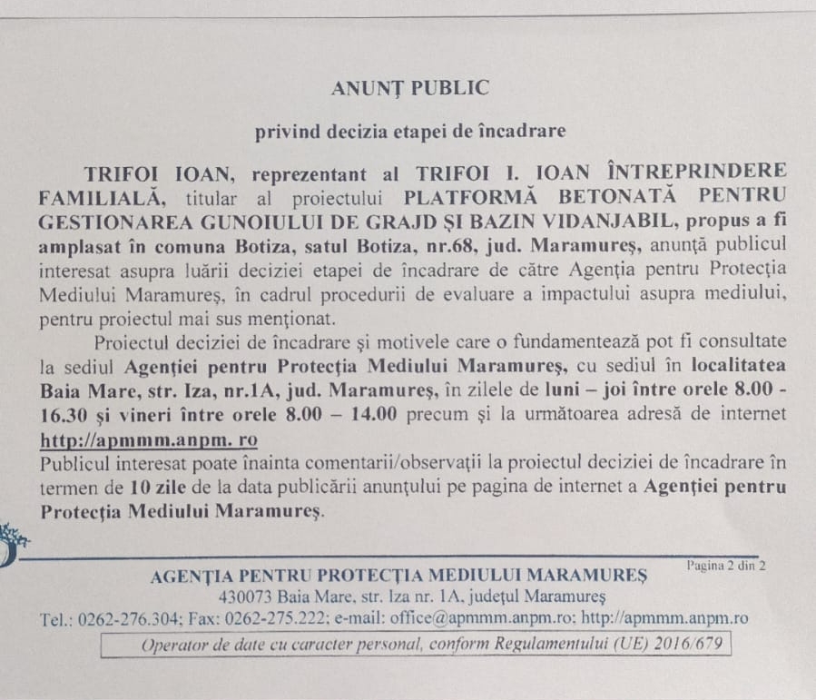SC FERMA ZOOTEHNICA SRL cu sediul municipiul Baia Mare, str. Topazului, nr. 5, județul Maramureș,…