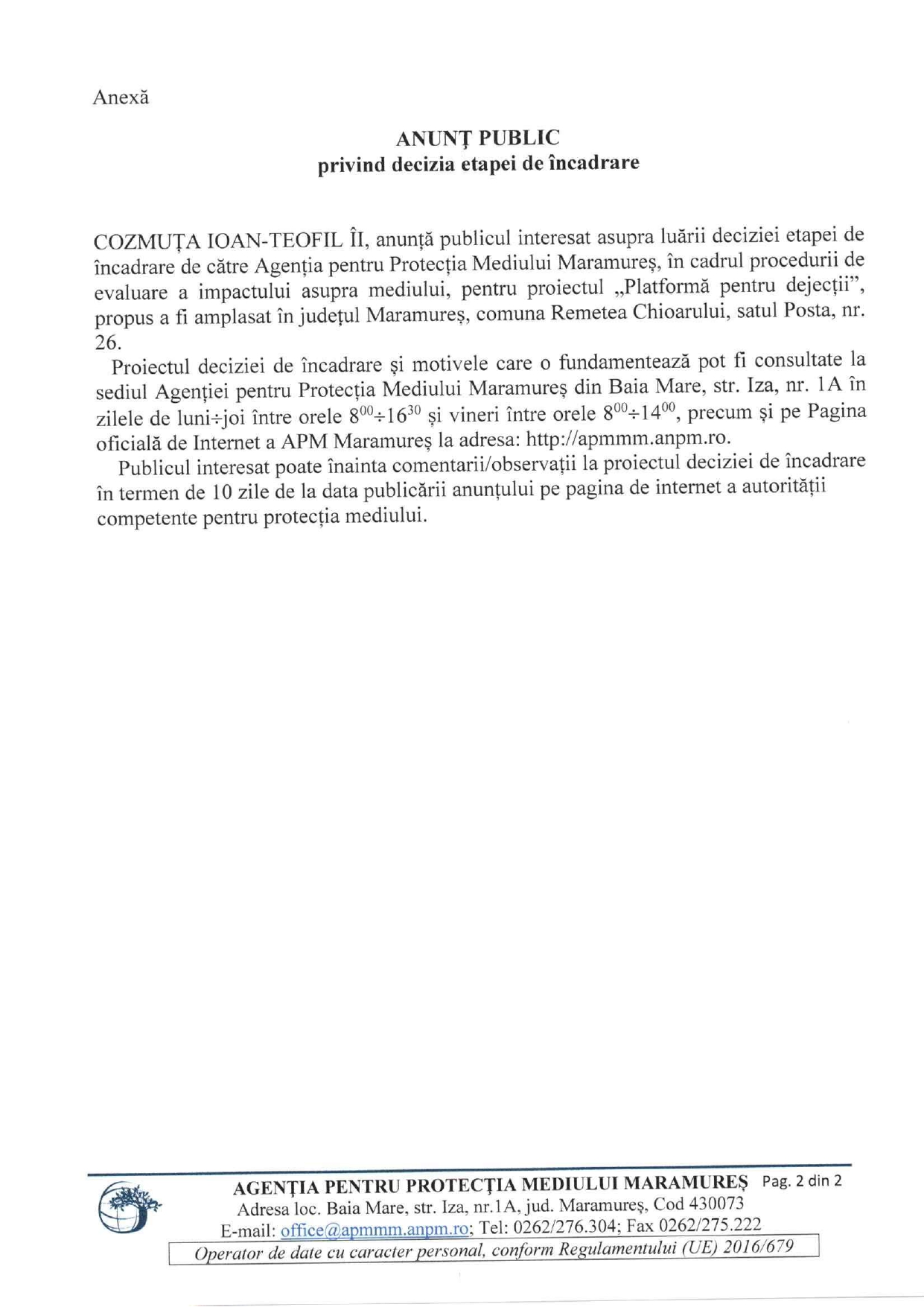 • Anuntul oficial