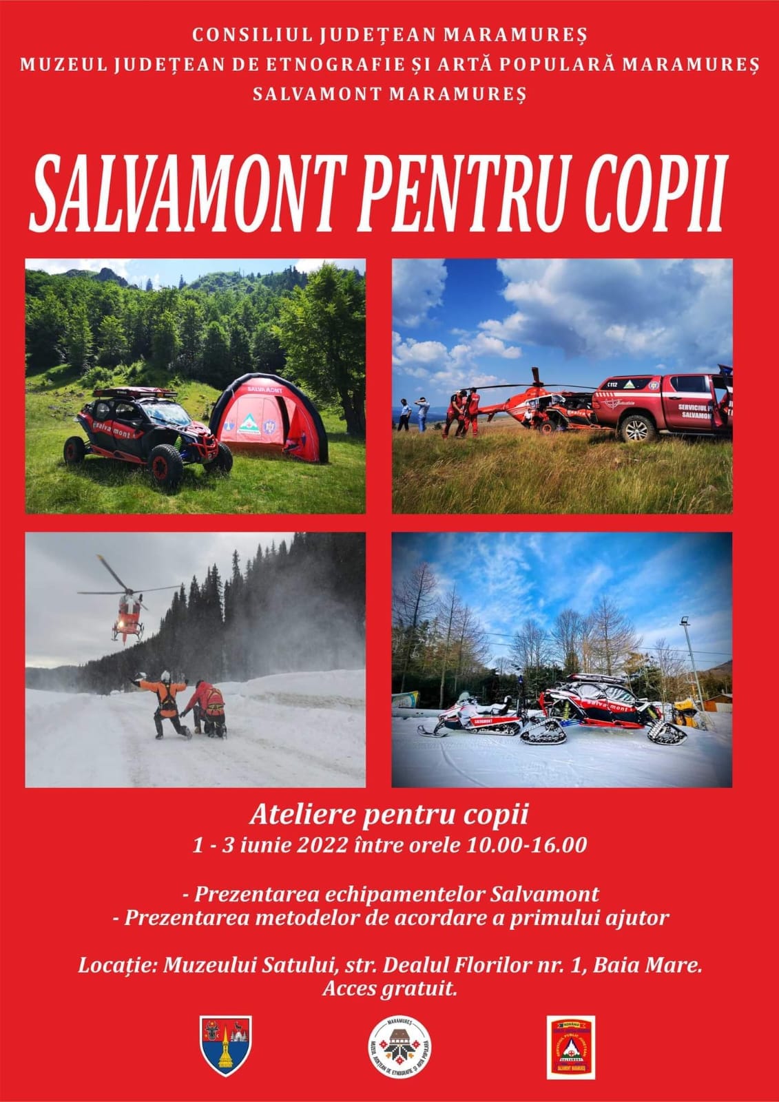 Acțiunea se va derula pe parcursul a 3 zile (1-2-3 Iunie), la Muzeul Satului Baia Mare, strada Dealul Florilor nr. 1. Accesul va fi gratuit. Atelierele se vor derula în intervalul orar 10.00 – 16.00. Are loc prezentarea echipamentelor Salvamont Maramureș și prezentarea metodelor de prim ajutor.