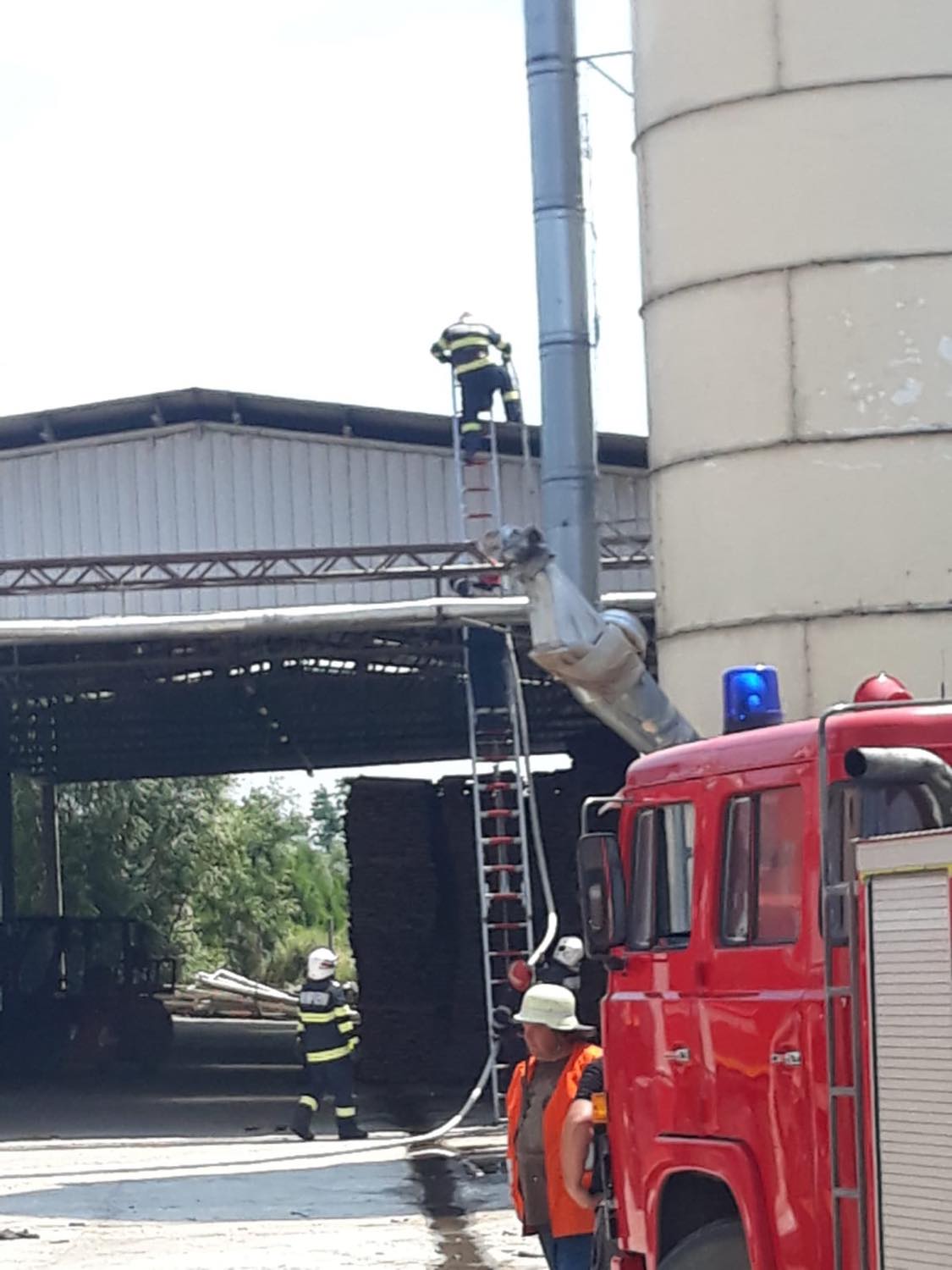 Un ciclon cu rumeguș a fost cuprins de flăcări, fiind necesară intervenția militarilor.