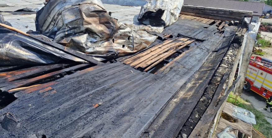 300 de metri pătrați de acoperiș au ars într-un incendiu la o hală din Ulmeni