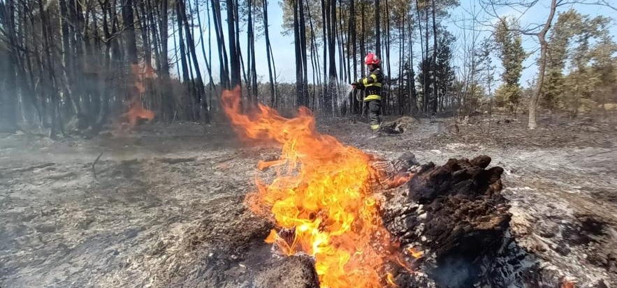 36 de pompieri români, cu nouă mijloace tehnice, continuă misiunea de stingere a incendiului din Sud-Vestul Franței