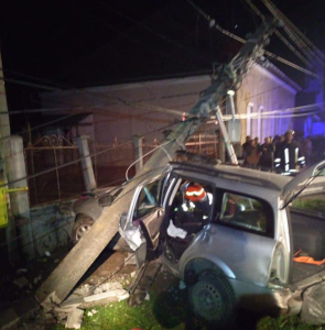 A ajuns în stare de de inconștiență, după ce a rupt cu mașina un stâlp de energie electrică