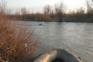 Azi dimineață, pe la 06.30, o sigheteancă de 33 de ani conducea mașina pe strada Hotarului din Sighet. La o curbă deosebit de periculoasă a pierdut controlul direcției și a plonjat în râul Iza. Apele au purtat-o circa 150 de metri în aval, până când autoturismul s-a oprit într-un banc de nisip, situat la circa 20 de metri de mal. Atunci femeia a reușit să din mașină și să urce pe plafon, de unde a strigat după ajutor. Trecătorii au auzit-o și au sunat la 112. Două echipaje ale Detașamentului de Pompieri Sighetu Marmației s-au deplasat de urgență la fața locului, la ieșirea din municipiu, pe Drumul Național 19. Au intervenit cu o autospecială de descarcerare și o barcă pneumatică. Pompierii au recuperat femeia, pe care au transportat-o cu barca, în siguranță, la mal, de unde a fost preluată de un echipaj al Serviciului de Ambulanță Județean. Din fericire, femeia nu a suferit leziuni corporale. Ulterior, pompierii au scos din albia râului și autoturismul avariat.