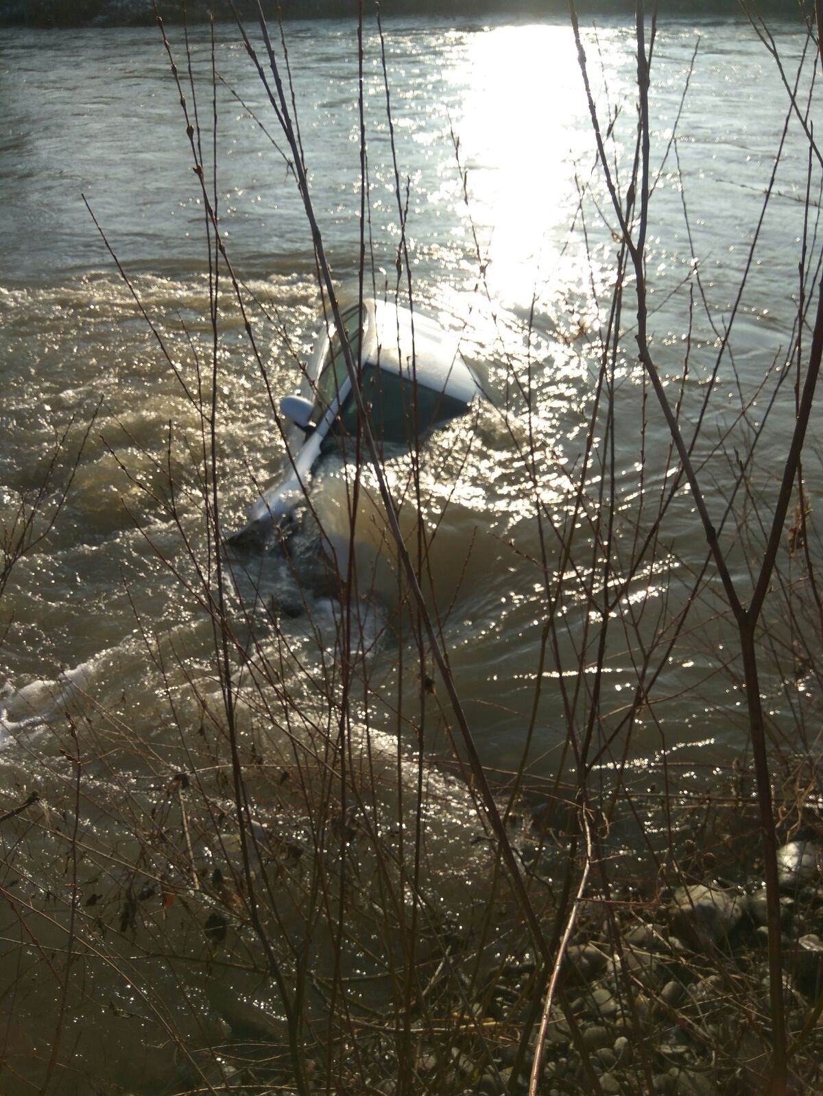 A plonjat cu mașina în Iza, dar a fost salvată la timp (GALERIE FOTO)