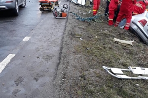 Accident cu doi răniți și o mașină răsturnată în șanț