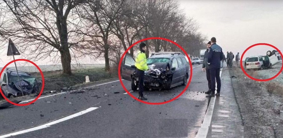 Azi dimineață (29 februarie), pentru patru autoturisme drumul a devenit brusc mai strâmt, dar au realizat – ca la algebră – combinări de patru luate câte două. La final au rezultat un decedat (în vârstă de 31 de ani) și șase răniți. Trei dintre răniți, care aveau doar contuzii, au refuzat transportul la spital, unul a preferat să meargă cu mașina personală (scăpată cu bine), iar alții doi au fost duși cu ambulanțele. Accidentul a avut loc pe DN 19, Oradea – Satu Mare, în localitatea Roșiori.