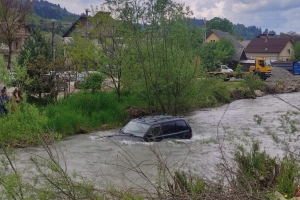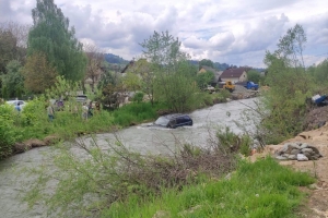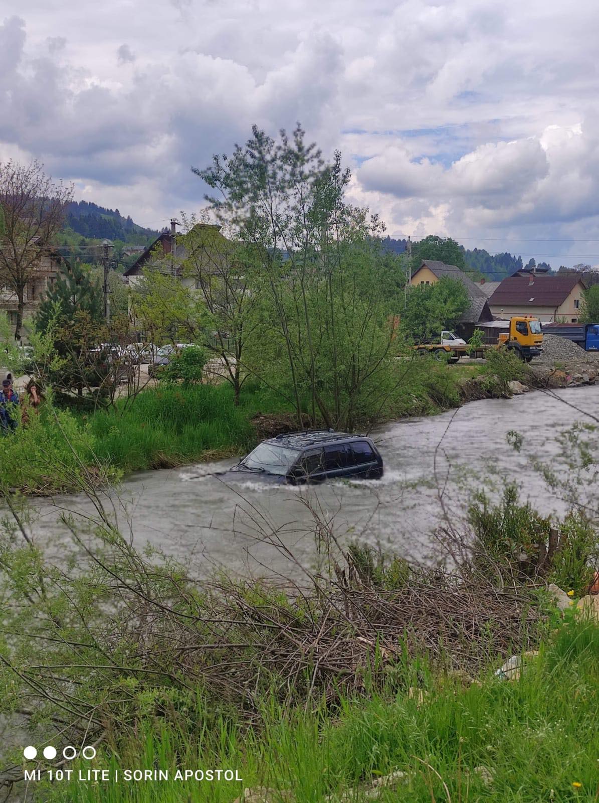 Accident în Borșa: A aterizat cu mașina în apele râului Vișeu, în urma unei coliziuni auto (FOTO)