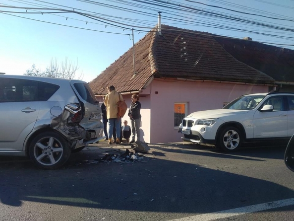 Un accident a avut loc sâmbătă în Tăuții Măgherăuș. S-a lăsat cu tablă îndoită.