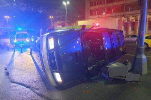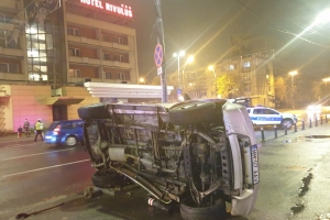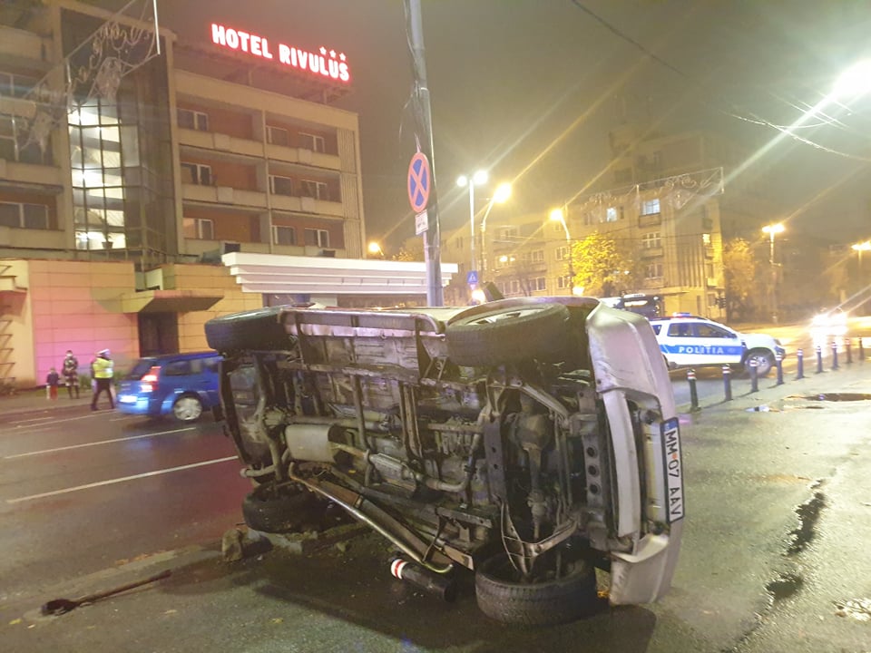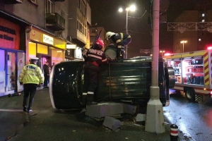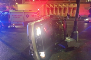 Accident spectaculos de circulație: În Baia Mare, un autoturism s-a răsturnat în centrul orașului! Victima a fost transportată la spital! (VIDEO ȘI FOTO)