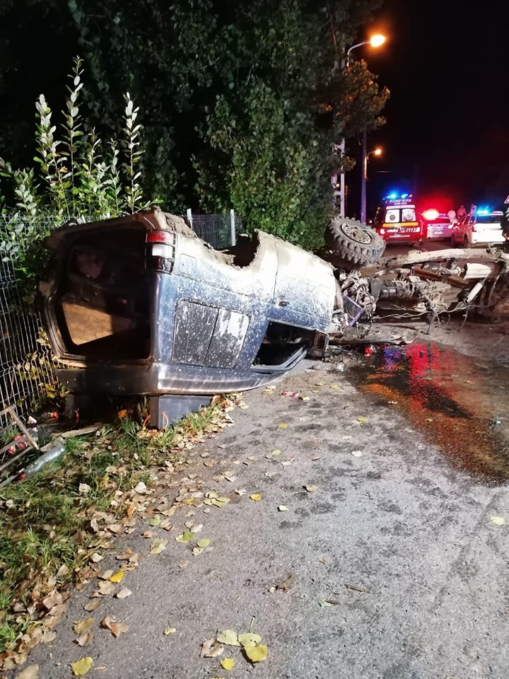 Accident teribil: Un autovehicul de teren s-a izbit violent de un stâlp de beton. Au rezultat patru victime, printre care un adolescent (FOTO)