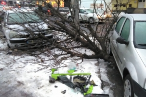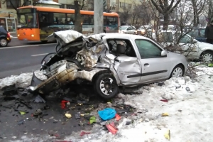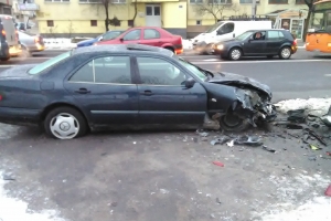Spre miezul nopții, un Mercedes E Klasse (model mai vechi), de culoare neagră, circula pe bdul Republicii din Baia Mare, dinspre bdul Traian spre bdul Independenței. În jurul orelor 23.40, mașina a trecut cu viteză prin intersectia cu bdul Bucuresti. Conducătorul auto, un băimărean în vârstă de 31 de ani, a pierdut controlul direcției și a intrat în două mașini parcate regulamentar pe partea dreapta, imediat după Policlinica Sf. Maria. Un martor, agent de securitate, a văzut „decolarea” Mercedes-ului și a estimat ochiometric o viteză de peste 100 km/oră. Au fost avariate grav două mașini: un Renault și un Ford (Fordul nu apare în imagini, fiind deja ridicat). Mercedesul a lovit și rupt și un copac de pe marginea drumului, care a afectat ușor și o Dacie Logan.