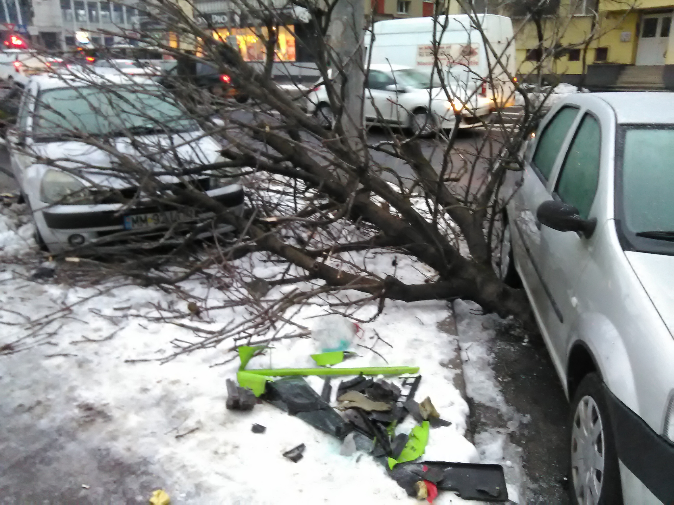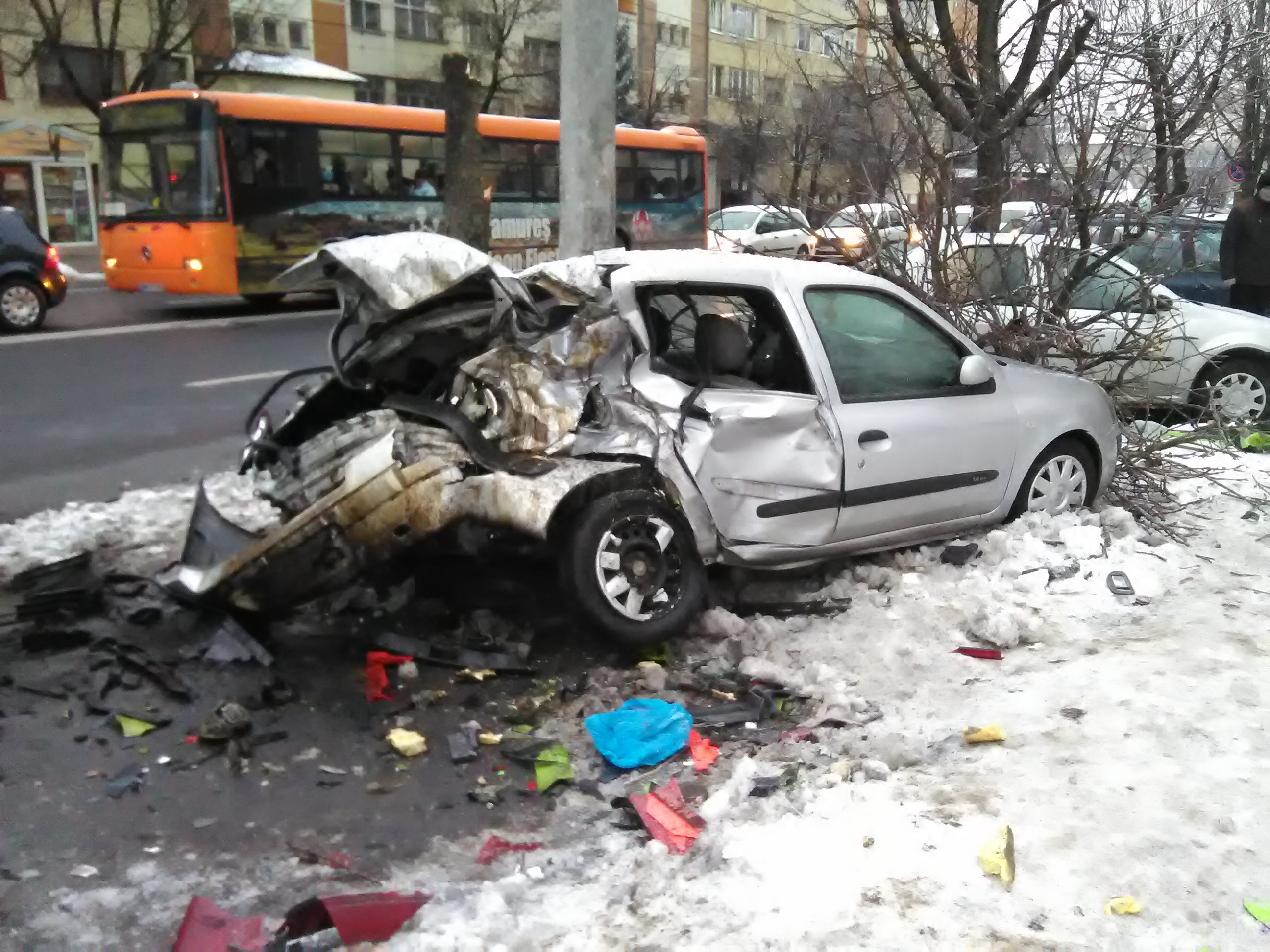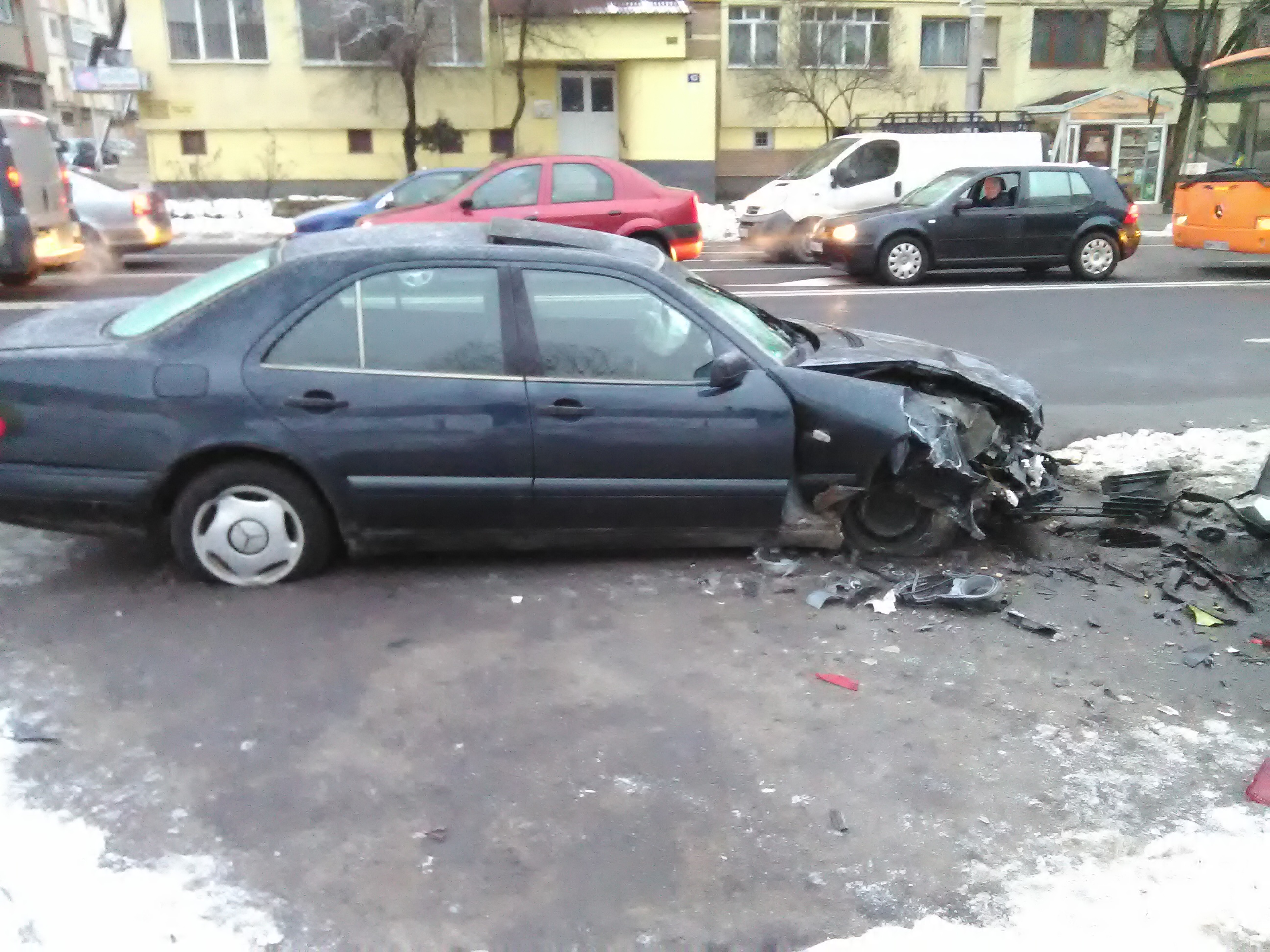 Spre miezul nopții, un Mercedes E Klasse (model mai vechi), de culoare neagră, circula pe bdul Republicii din Baia Mare, dinspre bdul Traian spre bdul Independenței. În jurul orelor 23.40, mașina a trecut cu viteză prin intersectia cu bdul Bucuresti. Conducătorul auto, un băimărean în vârstă de 31 de ani, a pierdut controlul direcției și a intrat în două mașini parcate regulamentar pe partea dreapta, imediat după Policlinica Sf. Maria. Un martor, agent de securitate, a văzut „decolarea” Mercedes-ului și a estimat ochiometric o viteză de peste 100 km/oră. Au fost avariate grav două mașini: un Renault și un Ford (Fordul nu apare în imagini, fiind deja ridicat). Mercedesul a lovit și rupt și un copac de pe marginea drumului, care a afectat ușor și o Dacie Logan.