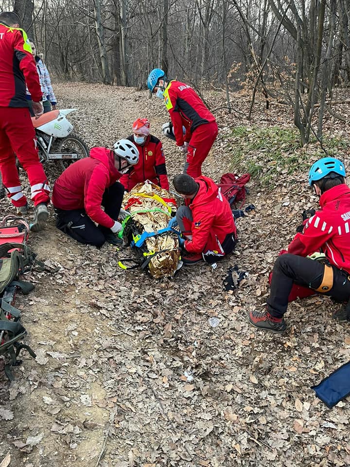 Actualizare 2: Intervenție Salvamont Maramureș: Motociclist rănit pe un drum forestier, mai sus de Uzina de Apă a municipiului Baia Mare (VIDEO ȘI FOTO)