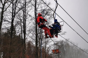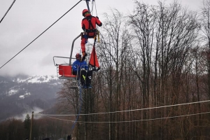 Actualizare: Alertă la Șuior: 18 turiști, printre care și un copil de doi ani, au rămas blocați în telescaun. Au fost coborâți de salvamontiști (VIDEO ȘI FOTO)