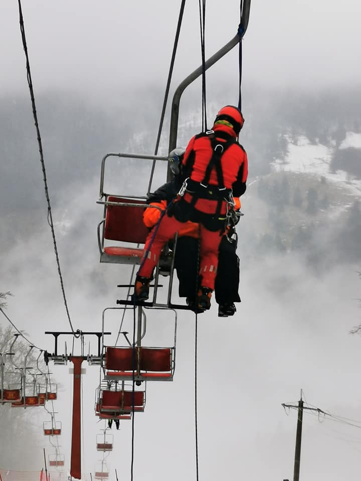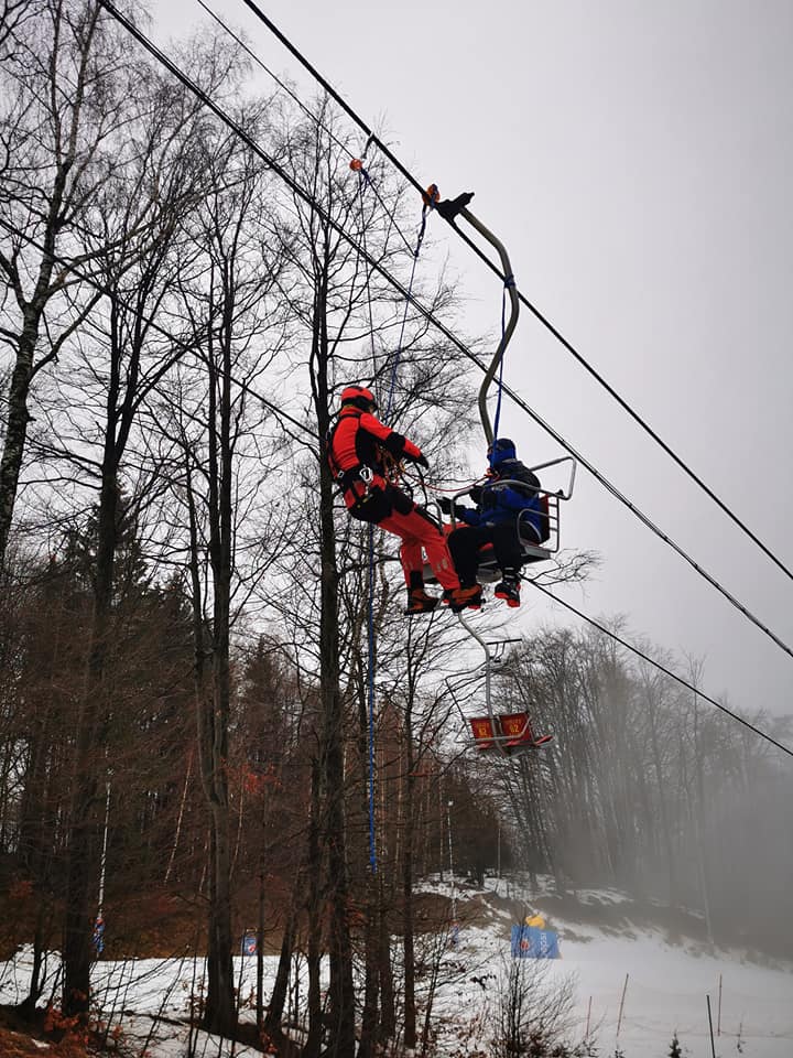 Prin 112, salvatorii montani au fost solicitați să se deplaseze de urgență la fața locului, după ce 18 turiști au rămas blocați în telescaun.